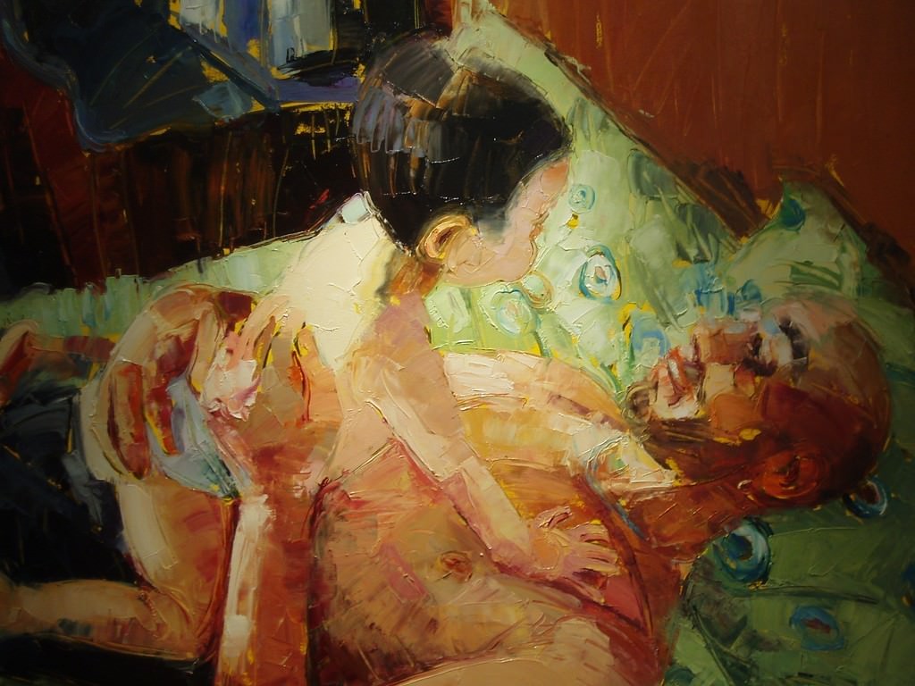Il rosso in sottofondo vivifica la variegata interpretazione di Nativity. “Nascita” come ogni “inizio”, un gesto che dà via al movimento, un’alba di un giorno che comincia, uno sguardo nuovo.