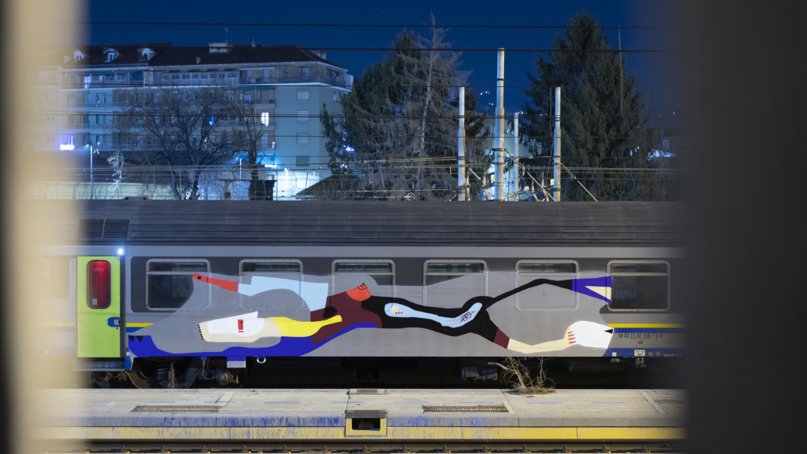 Nel momento in cui scatto la fotografia il treno è già pulito nella mia mente: le imprese di pulizie interverranno per realizzare il futuro a cui i miei dipinti erano destinati.