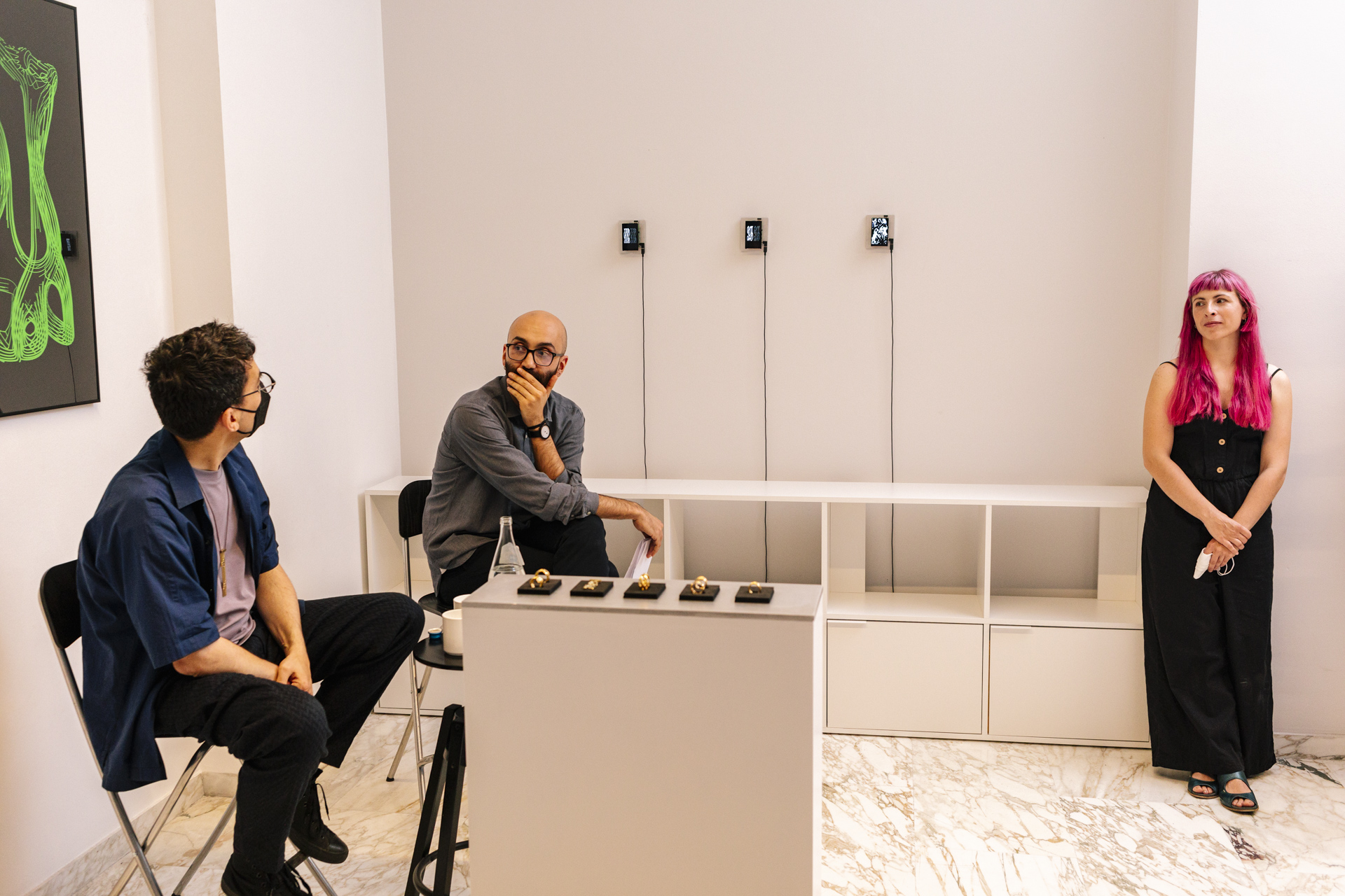 Nella mostra ospitata da Parco Gallery e curata da Emanuele Bonetti e Loredana Bontempi (Parco Studio) l’anteprima della capsule collection è accompagnata da immagini statiche e in movimento, che rendono partecipe il visitatore del processo che ha portato alla creazione degli anelli: i glitch dei naufragi, le cose che vanno storte, i residui, gli scarti digitali, le variazioni e le sorprese nelle quali giosampietro si è imbattuto strada facendo.