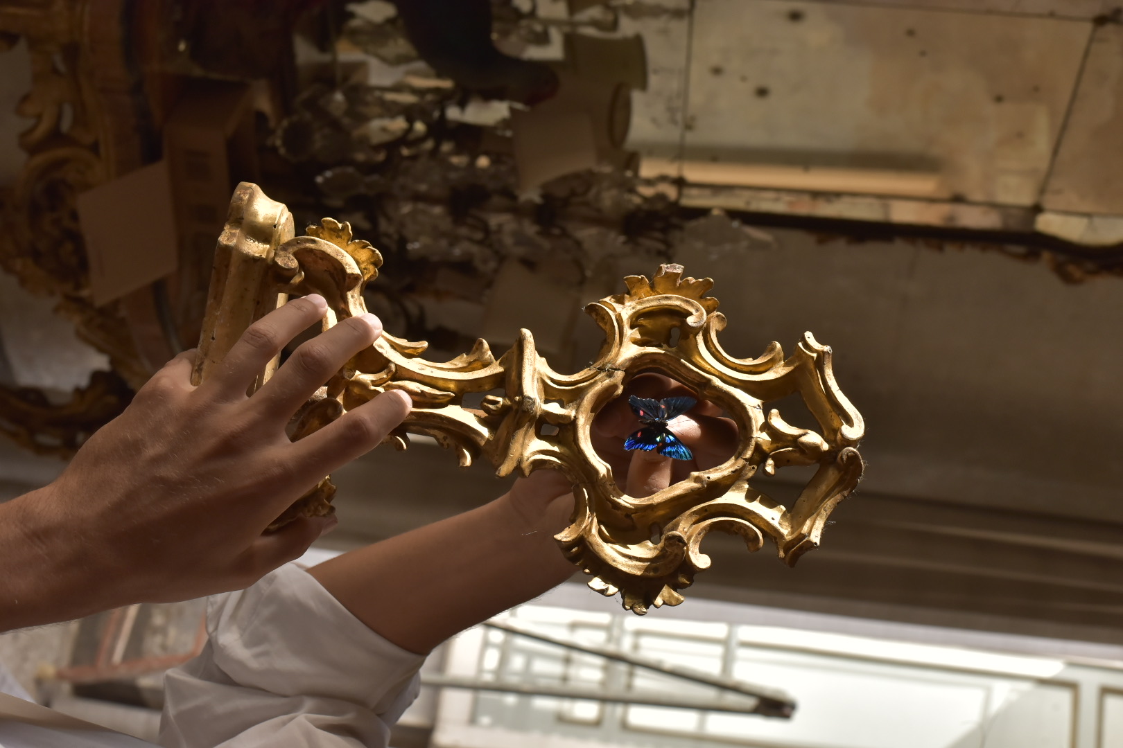 Rievocando l’immagine di un dipinto del pittore ferrarese Dosso Dossi Giove pittore di farfalle, Mercurio e la Virtù (1523-1524), l’artista nel corso dell’inaugurazione del 18 gennaio, immerso in un’atmosfera che richiama un paesaggio naturalistico, sarà protagonista di un intervento performativo che lo vedrà coinvolto nel dipingere aironi e farfalle su una superficie specchiante.