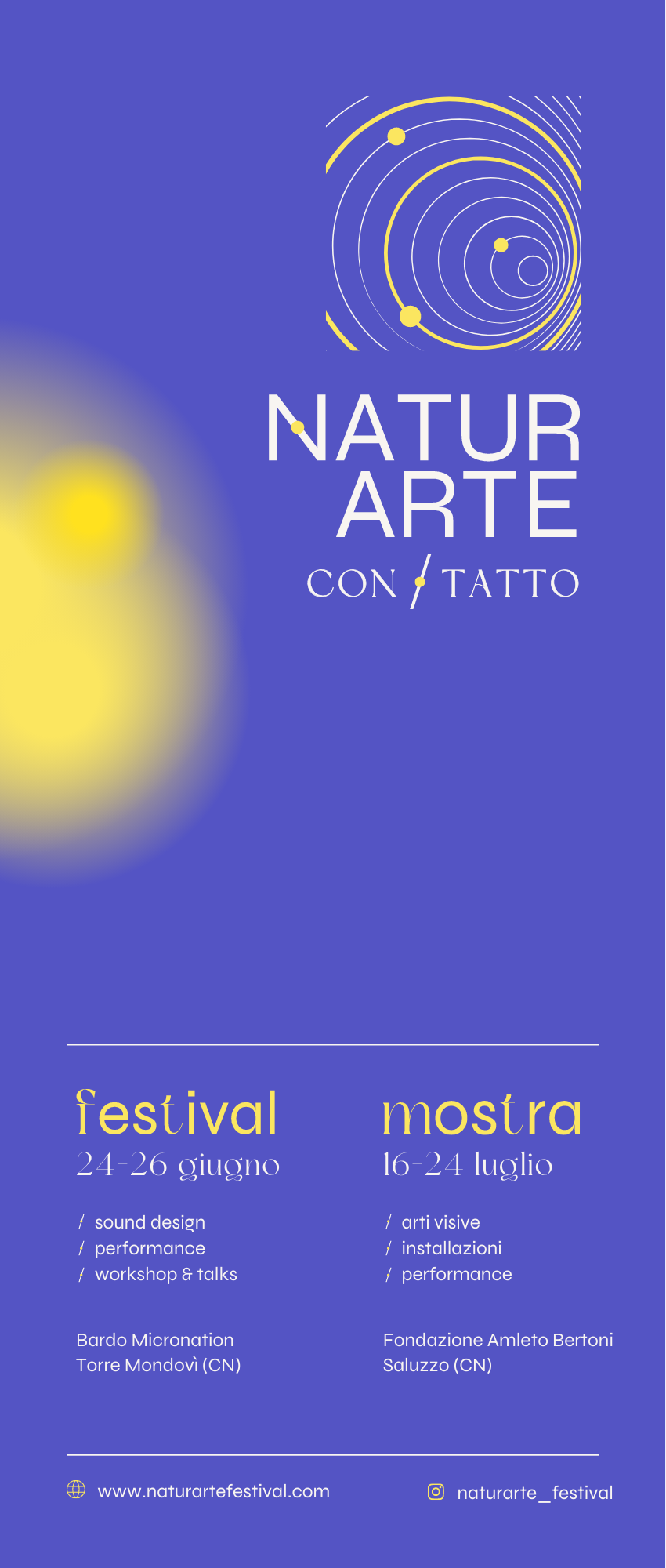 L’edizione 2022 di NaturArte si concluderà con una mostra di arti visive dal 16 al 24 luglio alla Fondazione Amleto Bertoni di Saluzzo. dal titolo CON/TATTO, a cura di Federico Pozzato e Giovanna Rombaldi (tdf.collective).