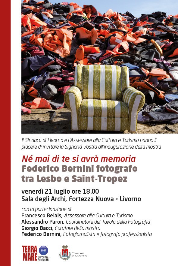 Né mai di te si avrà memoria: Federico Bernini fotografo tra Lesbo e Saint-Tropez è il titolo della mostra fotografica che verrà inaugurata domani, venerdì 21 luglio (alle ore 18), nella Sala degli Archi della Fortezza Nuova alla presenza dell'assessore Francesco Belais, del fotografo e di Giorgio Bacci (curatore scientifico dell'esposizione). Inserita nel programma del Tavolo della Fotografia, nel progetto “Di Terra e di Mare”, la mostra sarà visitabile anche nelle serate di Effetto Venezia.