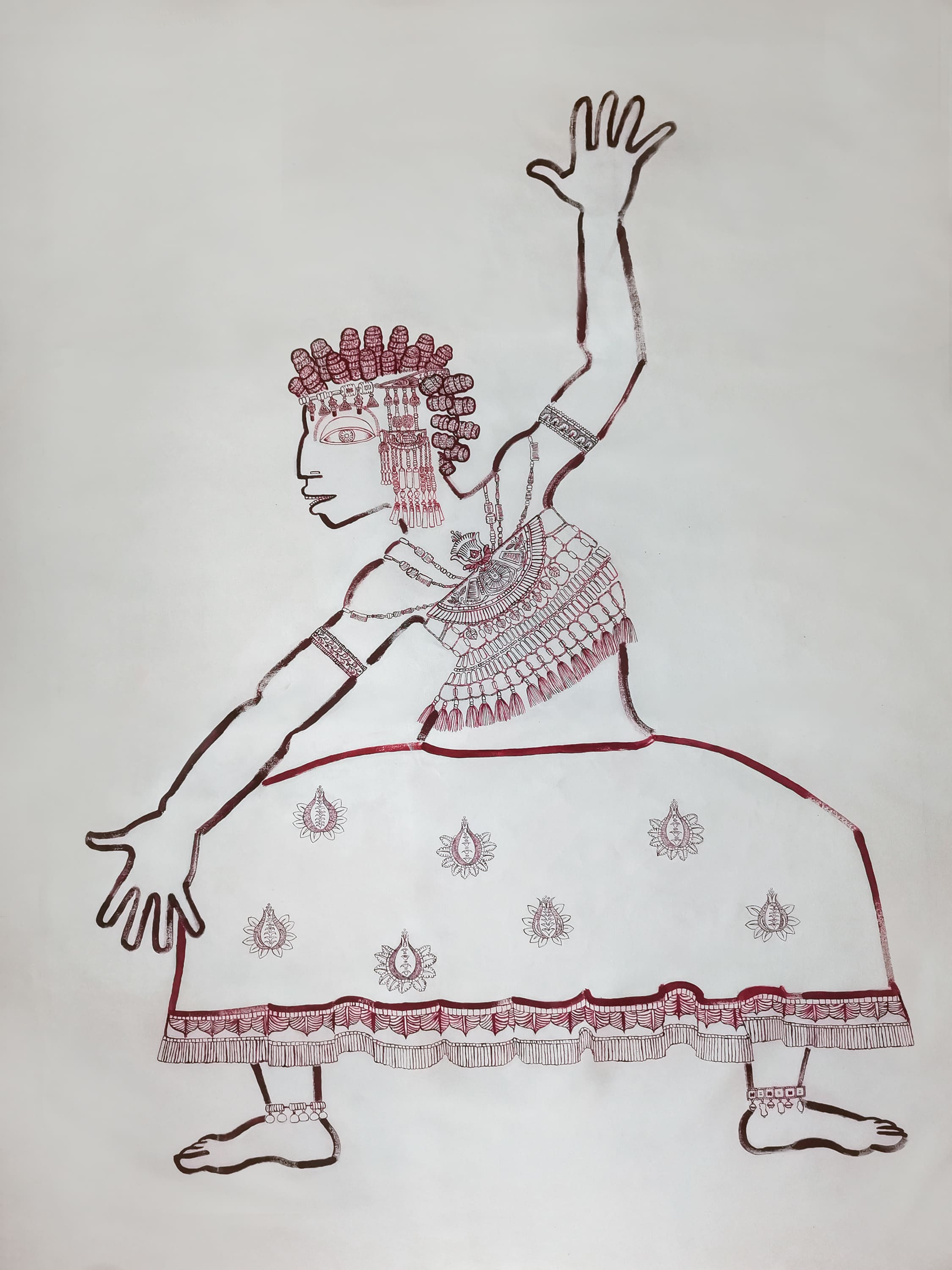 Agnese Della Guerra esplora attraverso la figura una dimensione primitiva e atemporale, in cui la danza diventa lo strumento per riconnettersi a una realtà sacrale e arcana. La sopravvivenza di un passato lontano e universale echeggia nei movimenti contorti dei corpi che, adorni di elaborati gioielli e inusitate acconciature, rappresentano una sorta di autoritratto.
