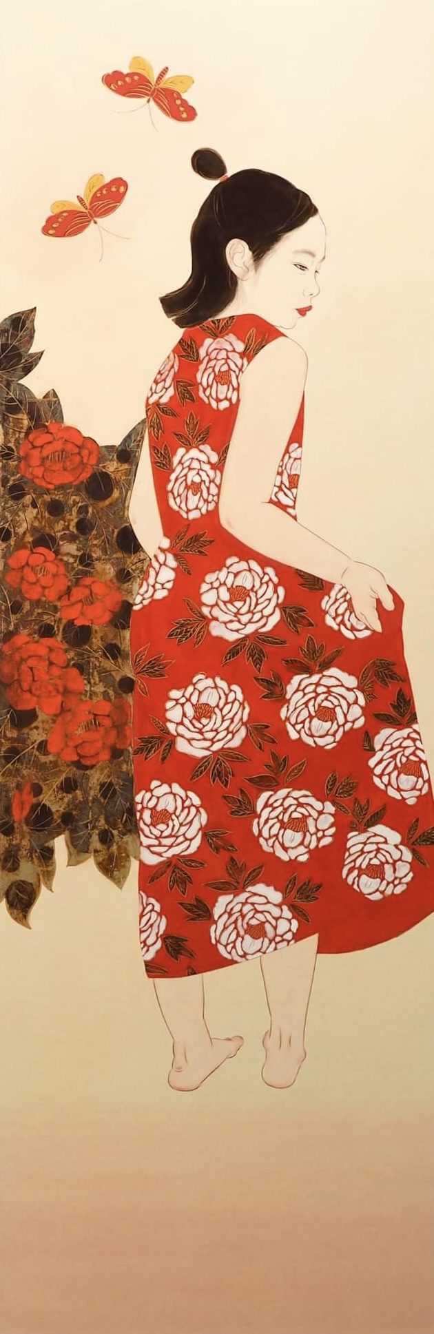 Inchiostro (sumi), vernice naturale (gofun), pigmenti minerali, foglie d’oro sono i pregiati materiali utilizzati per cogliere se carta giapponese le espressioni nude e crude dei bambini di Yuki Harada: le opere attraggono con la loro immagine bidimensionale, i bellissimi contorni e l'aspetto del colore del pigmento stesso. Sembra che i cambiamenti caotici del bambino nelle emozioni e negli atteggiamenti siano stati messi in luce. Proprio quando sembrava che stessero piangendo, stanno ridendo a crepapelle.