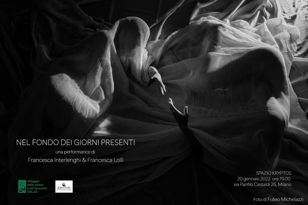 Riflettendo su questi fatti e muovendo dal presupposto che la violenza contro le donne sia in primo luogo una violazione dei diritti umani dovuta a una discriminazione frutto delle disuguaglianze che ancor oggi esistono tra i generi, Francesca Interlenghi e Francesca Lolli presentano, presso la galleria Spazio Kryptos di Milano, il prossimo 20 gennaio 2022 a partire dalle ore 19.00, la performance “Nel fondo dei giorni presenti”.