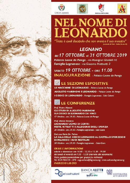 L’evento ‘Nel nome di Leonardo’ , ideato e curato da Ornella Ferrario e Pietro Bonzi, organizzato da Comune di Legnano, Associazione “Liceali Sempre”, Associazione “Famiglia Legnanese” e “Società Arte e Storia”, è patrocinato dal MILANO LEONARDO 500, ed è sostenuto da Banca Aletti, Cozzi Costruzioni e Confindustria Altomilanese.