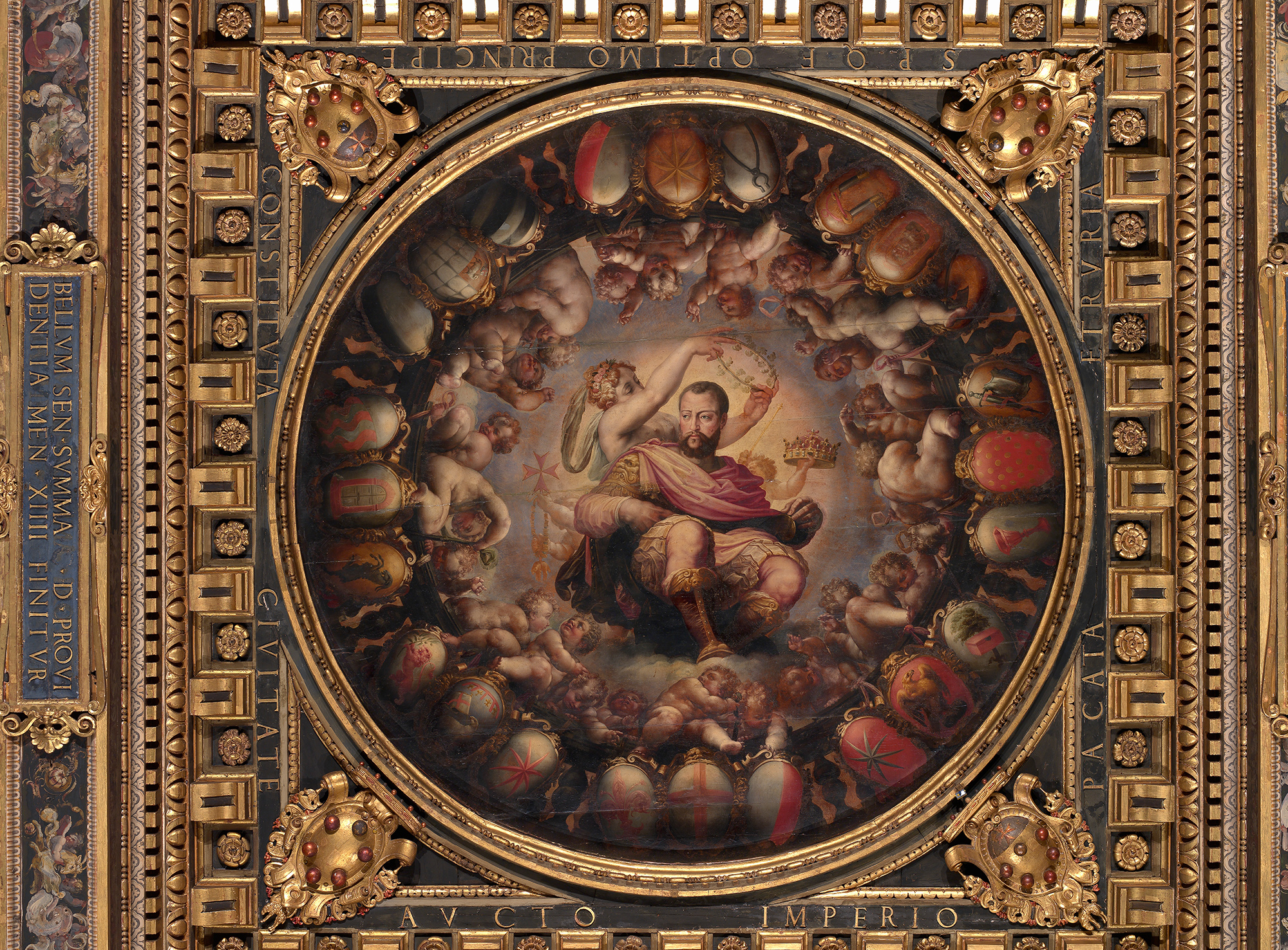 Il 13 dicembre 1569, nella Sala Grande di Palazzo Vecchio venne data lettura ufficiale della bolla pontificia in cui papa Pio V decretava la nomina di Cosimo a Granduca d’Etruria: esattamente a 450 anni di distanza, venerdì 13 dicembre 2019 prende il via al Museo di Palazzo Vecchio Nel palazzo di Cosimo. I simboli del potere: un progetto speciale che intreccia linguaggi diversi per evidenziare lo strettissimo legame che Cosimo I de’ Medici ebbe con Palazzo Vecchio, il “suo” palazzo ducale. L’iniziativa, cura di Comune di Firenze e MUS.E in collaborazione con Paolo Penko e Fondazione Arte della Seta Lisio rientra nelle Celebrazioni per il Cinquecentenario dalla nascita di Cosimo I e Caterina de’ Medici, promosse da un Comitato organizzatore costituito da oltre venti istituzioni culturali cittadine e coordinato dal Comune di Firenze.