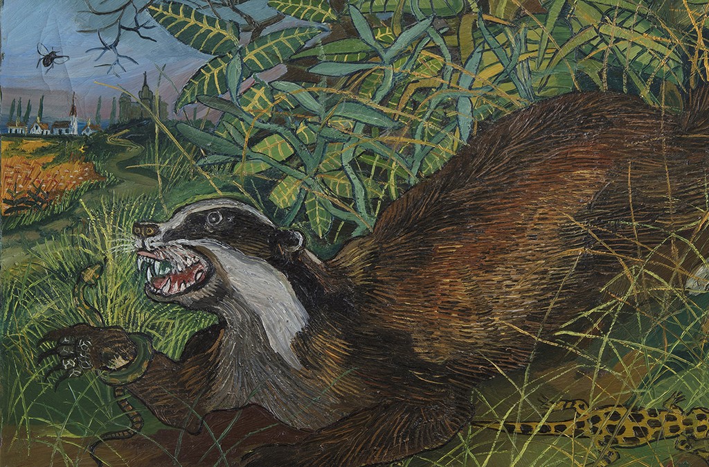 Il percorso artistico di Antonio Ligabue (Zurigo, 1899 - Gualtieri, Reggio Emilia, 1965) viene generalmente suddiviso in tre periodi: le opere del primo periodo (1927-1939), dai colori inizialmente tenui e diluiti e in seguito maggiormente intensi e corposi, sono dedicate a scene di vita agreste e animali feroci in atteggiamenti non eccessivamente aggressivi; i lavori del secondo periodo (1939-1952) sono segnati dalla scoperta e dall’uso della materia grassa e da una scrupolosa rifinitura della rappresentazione, che comprende i primi autoritratti e scene di violenza in misteriose giungle equatoriali, così come vedute agresti; le opere del terzo periodo (1952-1962), il decennio maggiormente prolifico, sono caratterizzate da un segno di contorno vigoroso e continuo.