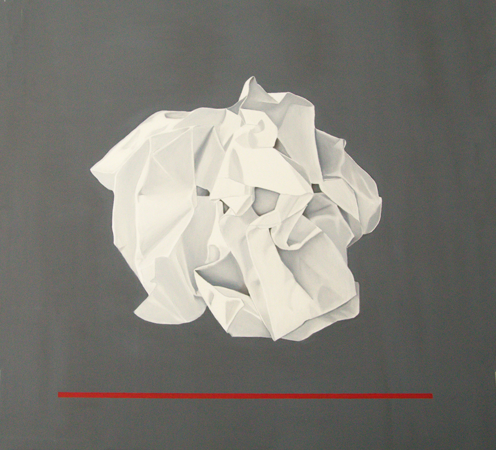 Se l’anima, avesse la forma di un foglio di carta, completamente bianco, potremmo lasciarlo vuoto, oppure riempirlo di colori o parole, accartocciarlo, aprirlo di nuovo, senza nemmeno tentare di nasconderne le pieghe. Potremmo forarlo per vedere cosa c’è dietro, o dentro, anche se, forse, la lacerazione non intenzionale andrebbe riparata con del nastro adesivo. Delle pieghe di Anna Maria Alessandrini ciò che colpisce è la limpida chiarezza dei momenti colti, la razionale organizzazione delle forme anche nell’afflizione o nello sconforto e, soprattutto, la possibilità di salvezza, lo slancio vitale di quella sottile linea rossa che accende la speranza.