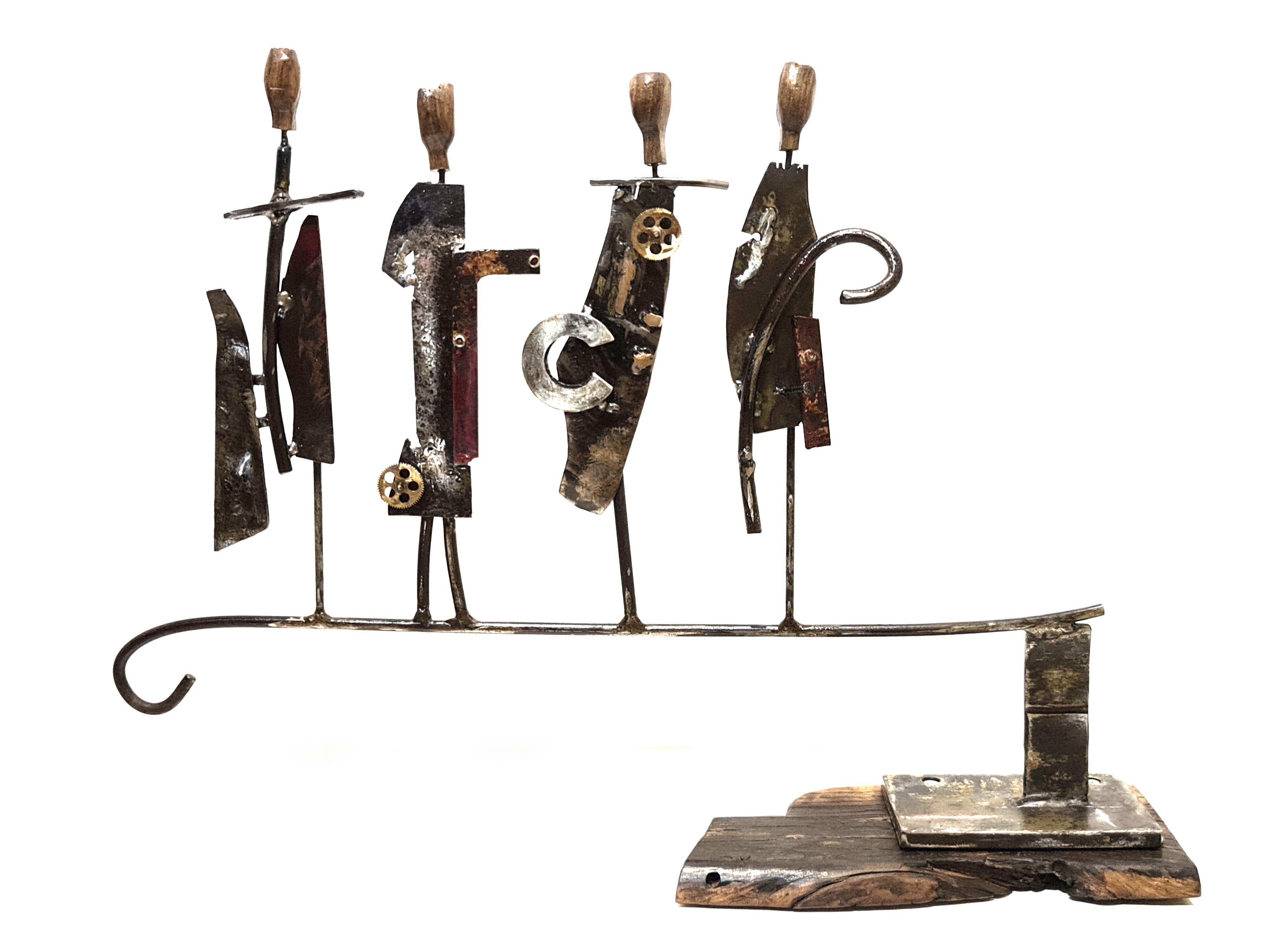 Se poi l’anima potesse modellarsi nelle forme simboliche di Francesco Lozzi, facendo delle pieghe personaggi, oggetti e materiali, racconterebbe la liricità dell’uomo, il suo rapporto con il mondo circostante inteso come luogo di Natura e Spirito. Il tentativo di narrazione dei pensieri più intimi o delle passioni più recondite si materializza, cioè, in gruppi scultorei che tessono non solo il rapporto tra soggetto e spazio, ma anche la dimensione del rapporto con l’altro da noi, parte costituente della natura umana, che nutre sé stessa nella relazione e non solo nell’individualità, intrecciando così il piano strettamente personale con quello sociale.