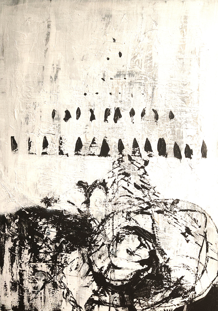 Se l’anima fosse materia informe, le sue pieghe, per Mimma Leonori, sarebbero porzioni di storie randomizzate, diverse e dissimili eppure congiunte nelle dolorose lacerazioni inflitte dal nostro abitare il mondo e che poi, col tempo, nella profondità di queste insenature, si sedimentano, si depositano e cristallizzano. È così che i residui sul cemento rivelano la burrascosa vita dei mari e la solitudine di un pesce nelle acque gelide e profonde; il bosco diviene un luogo pieno di pericoli che minacciano l'innocenza; i percorsi e i progetti personali si fanno confusi e contorti e un utile “ex oggetto” ora si trova accerchiato e ne scorgiamo un principio di combustione.
