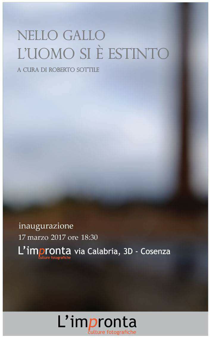 “L’uomo si è estinto” ci racconta Nello Gallo e ci accompagna in questo viaggio che diventa il racconto quasi intimistico di una ricerca, in apparenza fiabesca ed immaginaria, di un domani che l’uomo non riesce a percepire compiutamente perché la sua presenza è tornata marginale. Il tempo diventa la regola del viaggio della buona sorte, alla scoperta di un mondo nuovo che forse ancora ci potrà appartenere, ma che invano tenta di metterci in guardia. Se il tempo che ci circonda, che regola la nostra presenza è infinito perché fa parte di un tempo al di fuori del nostro mondo, che valore assume la nostra esistenza e il nostro “finito” tempo? È questa la domanda di questo viaggio. Infinite le risposte. Le immagini che scorrono ci propongono percezioni di una realtà, di un tempo vissuto che viene catturato in questa visione senza alterazioni in post produzioni e ci viene restituito dalla prospettiva “dell’altro”, di una specie diversa, che riuscirà a dominare e governare il nostro mondo. Sono immagini volutamente sfocate per sottolineare l’indefinitezza di un domani, di un destino che incombe ma che potrebbe essere rilegato nell’angolo delle favole e dell’impossibile. Sono fotografie vigorose ma nello stesso tempo cariche di un significato nostalgico avvolto in quello sfumato che rende anche visivamente l'area rarefatta. È il racconto di uno sbarco, dell’approdo e della ricerca della speranza e della libertà. Scatti che ci appaiono indefiniti nella struttura dell’immagine ma realizzati con estrema sintesi e cura dei dettagli (indefiniti), che ci restituiscono quell’ indipendenza, quella emancipazione della fotografia della regole di manuale, a favore di quella sintonia che Nello Gallo è riuscito a conquistare e catturare nei suoi scatti. Architetture, spazi urbani, frammenti industriali ed elementi naturali diventano gli “aggettivi” di questo racconto vero e disincantato. Non vi è tregua in questo racconto, ma tutto scorre lentamente poiché tutti siamo alla ricerca di quella valida ragione, di quella seconda volta per poterci riconnettere con il nostro universo e con la nostra coscienza. C’è impotenza e sgomento. Voglia di intervenire ma non riuscire a capire come. Sono immagini che appaiono ferme ma in realtà fremono di energia. Sono fotografie che accendono sentimenti che assorbono una quotidianità per restituircela da un diverso punto di vista. Siamo noi a dover vestire i panni dell’alieno, ad osservare ciò che le nostre incertezze hanno prodotto.