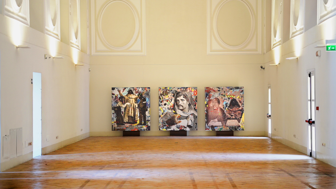Nell’ambito della manifestazione Maggio dei Monumenti 2020, l’opera è composta da tre tele di grande formano, un trittico su tavola, in omaggio al pensiero del filosofo nolano Giordano Bruno che proprio nel Complesso di San Domenico si formò da giovane. Su https://www.facebook.com/assessoratoallaculturaealturismodelcomunedinapoli/