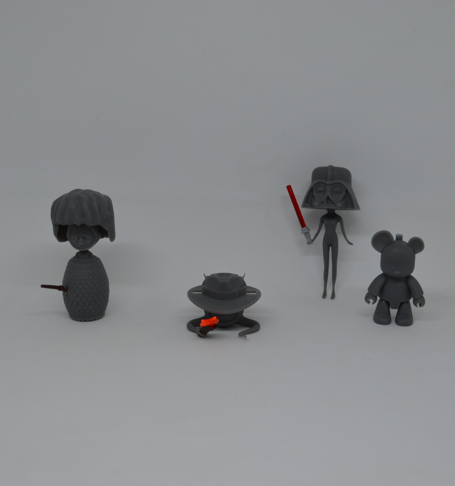 Nella prima fase del progetto si incastreranno tra di loro, creando inedite versioni di sé, frutti della decomposizione e della ricomposizione degli stessi. La compatibilità industriale che l’arte ha fatto propria può capovolgersi in senso di affinità spirituale, tra gli artisti attraverso i personaggi, per la scelta di rendere la propria opera compatibile con quella di altri – in ciò ricalcando, anche, un’azione di gruppo svoltasi attraverso numerose mostre dal 2013. Vi si realizza, allo stesso tempo l’insensato accumularsi di possibilità tecniche e combinatorie del mondo delle passioni Otaku, dei toys, delle customizzazioni.