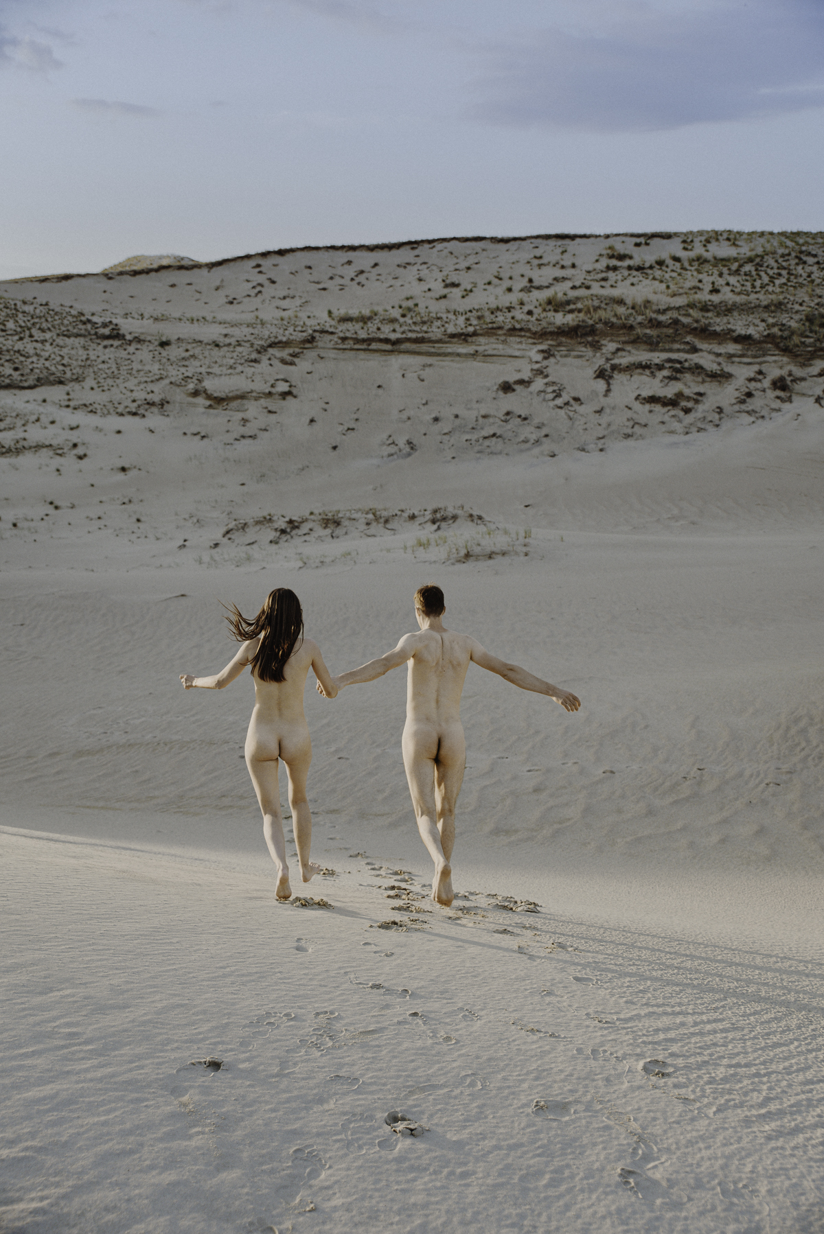Il nudo e i primordiali canti pagani, conosciuti anche come i mantra lituani, coinvolgono e accompagnano l’ascoltatore in uno stato di trance dove ci si riappropria di una maggiore sensibilità di sguardo e percezione. Nelle fotografie le persone nude sono catturate nei momenti di transizione, trasformazione, di incontro primordiale con la natura e con sé stessi: ne rinascono, ritornano alla concezione circolare del tempo spogliandosi del proprio involucro contemporaneo.