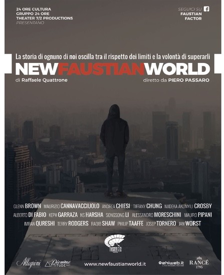 Da Beatrice Burati Anderson inaugura la mostra "NewFaustianWorld. A book, a movie, an exhibition"che, spiega la galleria, «è un progetto tratto dal libro di Raffaele Quattrone edito da 24 ORE Cultura ed ispirato al Faust di Goethe, emblema dell'uomo contemporaneo teso a non accontentarsi del dato ma a voler sempre più, a voler superare i limiti, i confini. "NewFaustianWorld” documenta la pratica artistica di 17 artisti internazionali nei quali il curatore ha individuato quello che definisce Faustian Factor: una forte e riconoscibile identità artistica ed un esasperato virtuosismo che permette loro di sfidare computer, fotografia, video, performance... perché infatti questi 17 artisti sono tutti pittori. Sarà possibile vedere anche l'omonimo docu-film diretto da Piero Passaro e realizzato da Theater 7/2 Productions, già premiato in diversi festival internazionali»