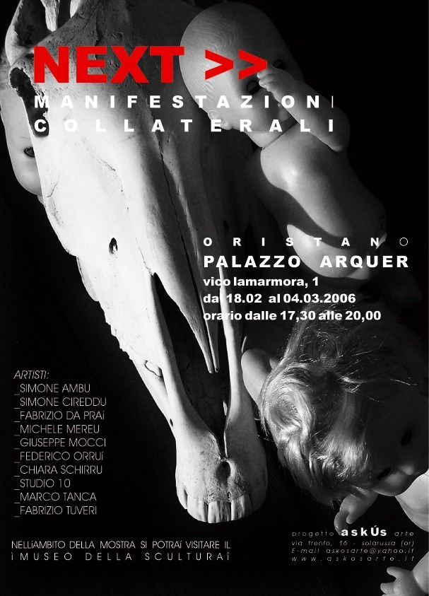 Apre sabato 18 febbraio, alle ore 18.30, nelle sale di Palazzo Arquer di via Lamarmora a Oristano la mostra d’arte contemporanea NEXT>> Manifestazioni collaterali che potrà essere visitata tutti i giorni dalle 17,30 alle 20,00 e che ultimerà il suo percorso la settimana dedicata ai festeggiamenti della Sartiglia.
