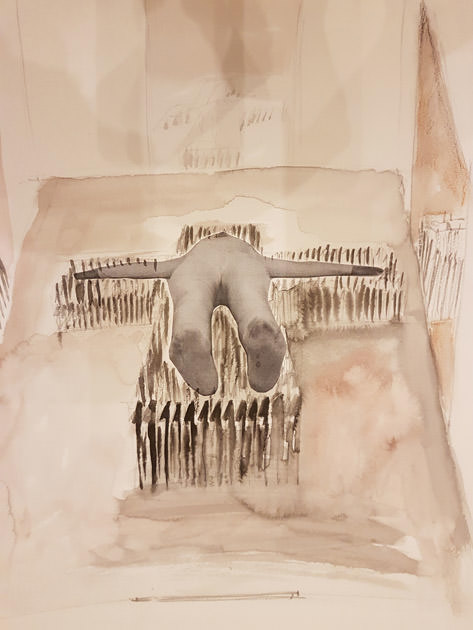 Il lavoro di Nicca Iovinella prova a ristabilire un equilibrio, tra opera e corpo. L'autrice, nella sua presenza fisica, è tutta nell'azione creativa, ma rispettando sempre alcune condizioni. La prima è nella spersonalizzazione: in alcuni casi, una tuta diventa strumento delle sue azioni e anestetizza i tratti anatomici. In altri, un abbigliamento del tutto quotidiano permette all'artista di confondersi tra il pubblico. Una seconda condizione sta nella permanenza dell'opera. Il corpo e l'azione performativa serve da innesco di un racconto, di un evento che accade e che ha il suo centro nella costruzione, ma da questa dipende e per questa significa. Quel che accade tra artista e creazione, in un solo specifico momento di rappresentazione, è documentato attraverso il video. Quel che rimane, al di là della performance, non sono perciò meri residui, rimanenze di qualcosa di maggiormente pregnante al quale continueranno a rimandare, ma è opera autonoma capace di propria valenza estetica, indipendente dall'azione avvenuta. Nel progetto per Nuvole Arte, Iovinella propone un letto, una croce di steli acuminati sui quali si adagia. L'artista dichiara subito che non c'è alcun obiettivo di teatralizzazione della sofferenza, ma solo della condizione, di certo scomoda, dell'artista che sta sulla propria opera e da questa, forse, è sostenuto e al tempo stesso respinto.