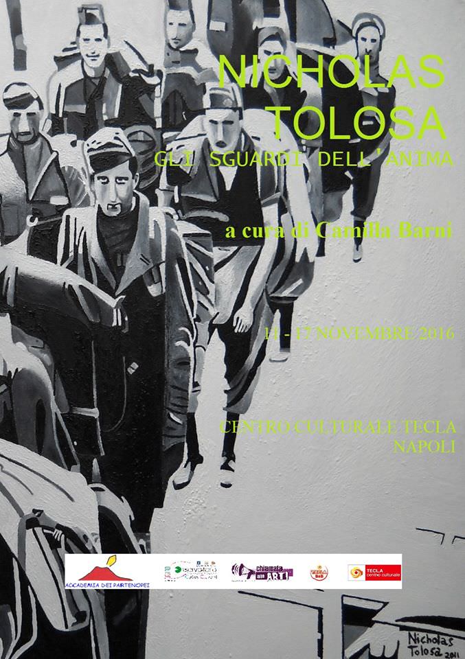 Il linguaggio pittorico di Nicholas Tolosa, giovane artista napoletano, ricerca attraverso un forte pathos, l’anima dei suoi personaggi grazie agli sguardi fissi, espressivi e di grande carica emotiva.