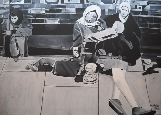 L’Umanità che Nicholas Tolosa interpreta – scrive Sottile nel testo critico di presentazione della mostra – non ha filtri, vive in una quotidianità spesso inquieta, che giorno dopo giorno ti segna e ti mette alla prova. Umanità spesso ferita, ma che con dignità trova la forza per lottare.