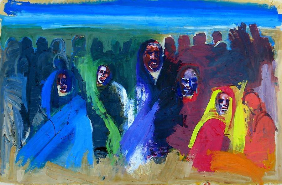 L’artista esplora il rapporto della figura umana con lo spazio che la circonda, il tutto caratterizzato da un pennello dal segno deciso e a tinte forti e originali