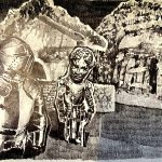 Un confronto fra i due artisti, ognuno attraverso il proprio complesso, eterogeneo e multiforme linguaggio, su alcuni brani o frasi dell’Orlando Furioso di Ariosto nella logica del paragone e dello scambio dialogico. Il progetto espositivo comprende disegni, sculture, libretti d’artista, collage.