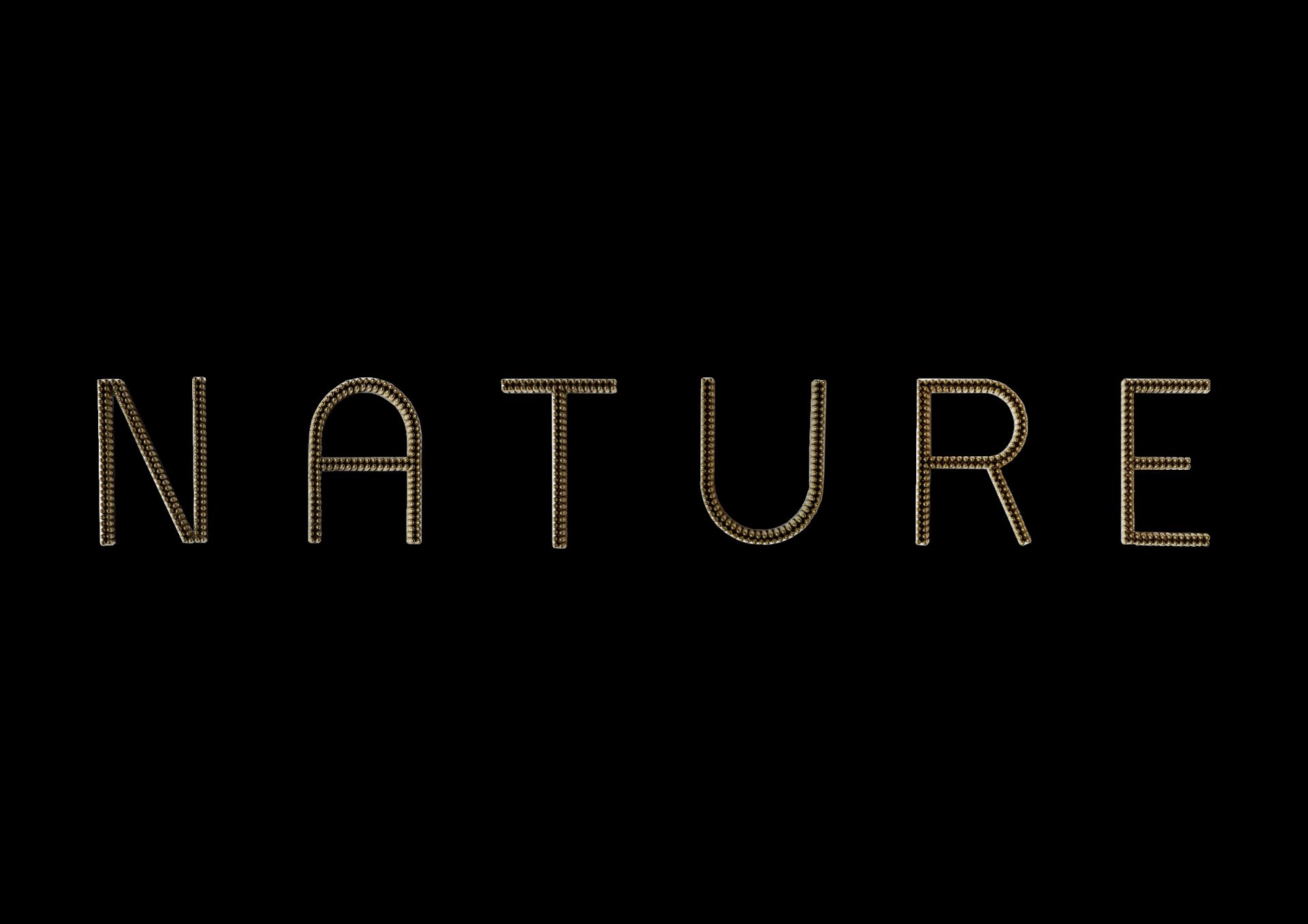 Il sostantivo NATURE, composto da proiettili cromati, emerge in un contesto di sfondo astratto rappresentante un magma incandescente, simbolo di un pianeta in febbrile sofferenza.