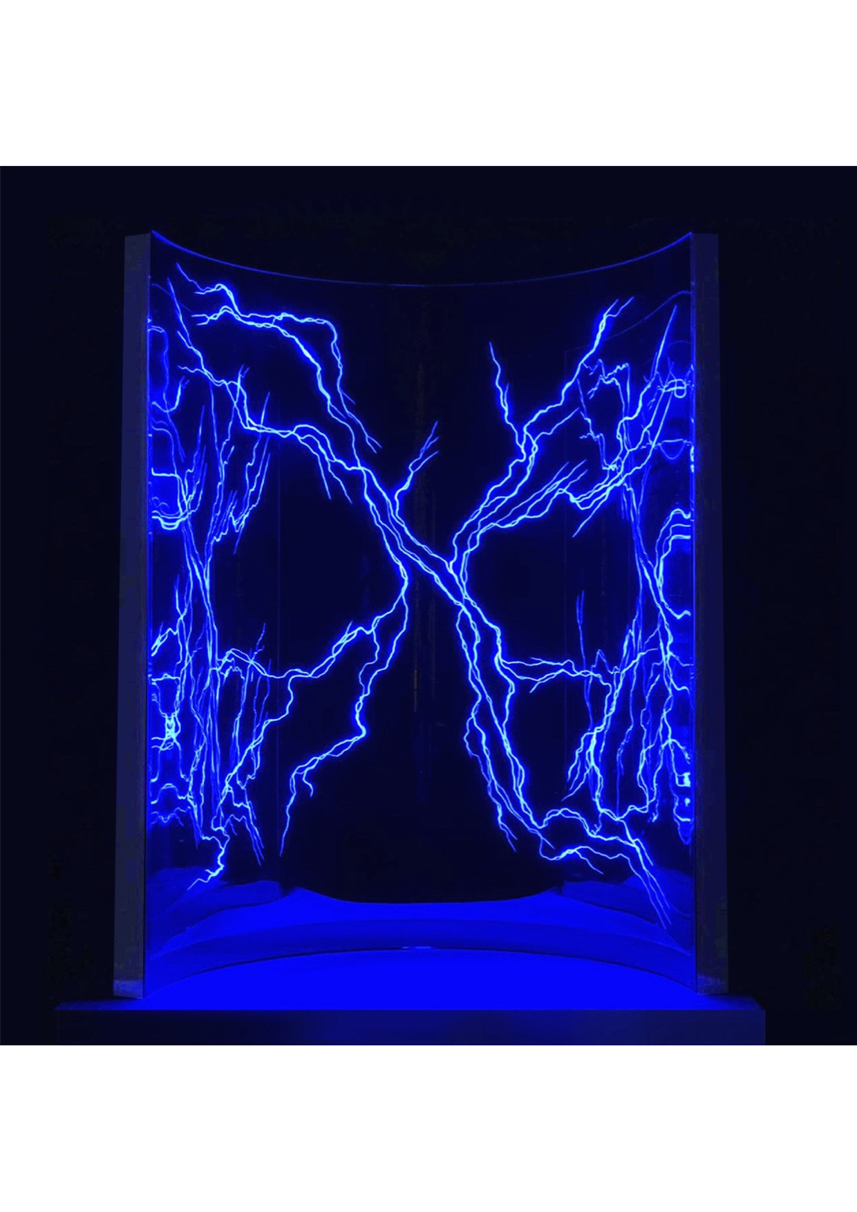L’opera di Nicola Evangelisti cerca di sviluppare poeticamente i principi della relatività generale di Einstein secondo cui quando l’energia e la materia riempiono il cosmo, esso si deforma, e la luce si irradia seguendone la curvatura: di conseguenza, le dimensioni angolari di ogni oggetto osservato, risultano modificate e le immagini si sdoppiano e intrecciano creando scenari stupefacenti.