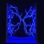 Con questa installazione Evangelisti ha cercato di visualizzare le possibili prospettive aperte dall’immaginario di Einstein, tramite un’estetica in grado di coinvolgere lo spettatore nell’estensione stessa dell’opera; in prossimità di essa, infatti, grazie a un preciso fenomeno ottico, appare un disegno di luce totalmente aereo, impossibile da definire in un punto esatto dello spazio.