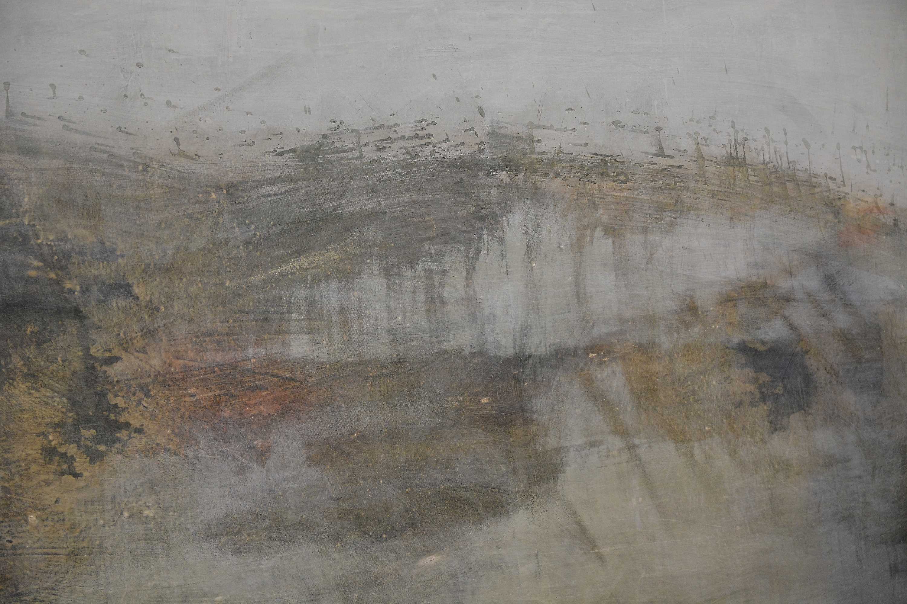 Sulla tela, il movimento tra visibile e invisibile assume forme che emergono per contatto. Le superfici evocano paesaggi, figure, mentre le tracce chiedono di essere percepite. Il colore vibra come organismo attraversato da variazioni interne. La pittura si realizza quando lo sguardo accetta di sostare. L’opera si configura come un luogo che consente al pensiero di non definire subito ciò che vede e di lasciarsi toccare dall’accadere in corso. Ciò che resta non coincide con una risposta, e si presenta come un movimento interiore aperto.