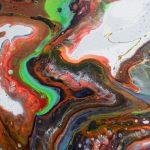 Nicola Morea si distingue per la sua profonda padronanza della tecnica della Flow Art, una procedura che esplora la fluidità cromatica e materica. Le sue opere esposte in FLUIRE…, combinando gesti spontanei e controllo tecnico per creare composizioni che evocano un mondo in continuo mutamento.