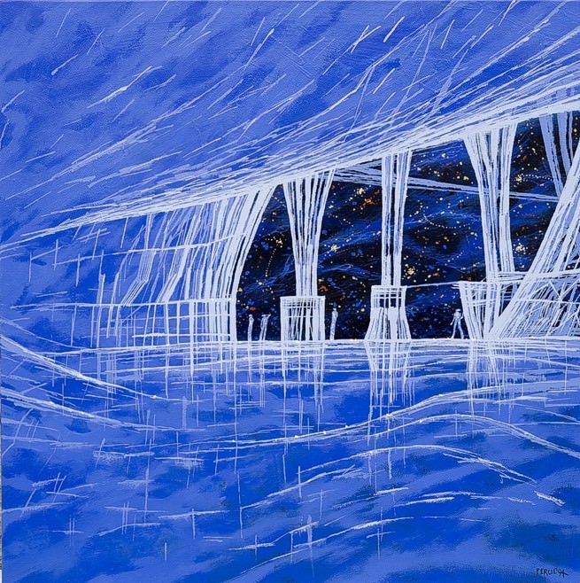 L’artista continua a vagare con la mente nell’enigmatica Atlantide, dipinta con la magia di segni e colori in un organico diario in cui tutto è talmente fantastico da sembrare reale