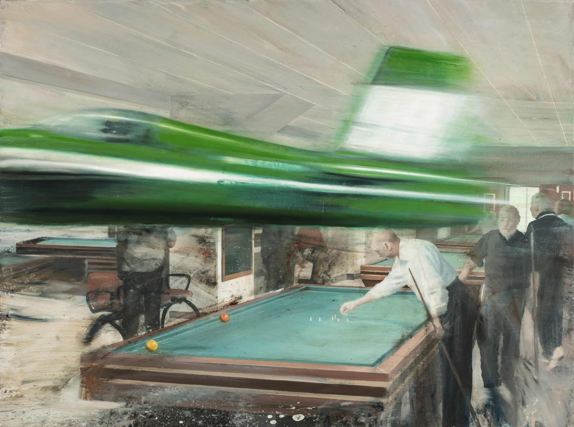 Foto: NICOLA PUCCI “Sala biliardo”, 2016, olio su tela, 140×170 cm
