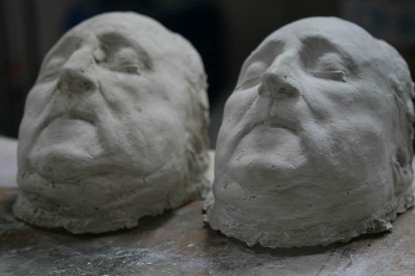 L’artista, sospinto in un altrove, va oltre i numerosi documenti storici che orientano verso la figura di un Rossini riconoscibile, alla ricerca di una sua ultima impronta originaria, la maschera funeraria. Di questa pratica d’altri tempi, quando del corpo di un artista era ambito ogni reliquia e testimonianza, non v’è però alcuna traccia, pertanto egli procede in una personale ricognizione prima con una scultura del volto del maestro e l’esecuzione della sua impronta, poi aggiungendo dettagli ed espressioni, elaborandola come in un reale processo di decadimento, alla ricerca di un possibile moulage di Rossini sul letto di morte. “L'assenza di ciò che cercavo ha dato valore al mio progetto, ”dichiara l’artista“ nel senso che dalla mia mostra in poi esisterà una credibile impronta dell'ultimo Rossini, effettuata a partire dal disegno realizzato da Gustave Dorè di fronte alla salma del Maestro e alle numerose testimonianze fotografiche d’epoca. Un “falso” condotto con grandissima cura che va ad occupare una lacuna storica.”