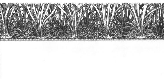 Come uno spazio dentro lo spazio, l’artista costruisce un ambiente neutro ed austero popolato da una natura perfetta e meccanica. Ai sofisticati disegni, nei quali la vegetazione viene abilmente contenuta da un tratto preciso, Toffolini giustappone un’installazione che è metafora del controllo imposto dall’uomo. L’erba fitta cresce e s’intreccia libera per poi essere tagliata realmente e metaforicamente sulla carta dal realismo del tratto. Pieni e vuoti, densità e assenza compongono un sottile gioco tra il rigore della macchina e il suo transitorio e instabile impatto sulla natura. Come una serra, lo spazio creato da Toffolini a Villa Manin diventa un contenitore rigoroso e austero in cui il calore della vegetazione è tradotto in un mondo in bianco e nero. L’artista ordina il caos e classifica la casualità, un gesto paradossale che da vita ad un universo affascinante e utopico.