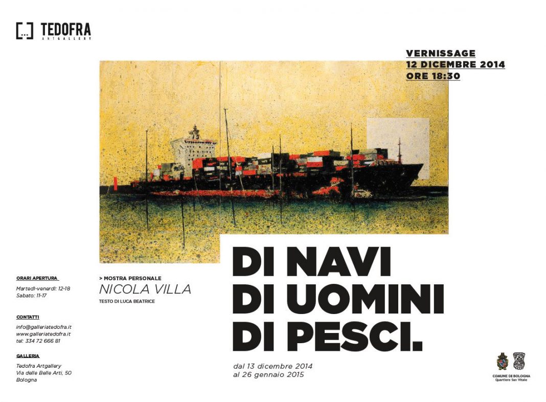 La galleria Tedofra di Bologna inaugura venerdì 12 dicembre 2014 alle ore 18.30 la mostra personale di Nicola Villa dal titolo: Di navi, di uomini, di pesci. Testi in catalogo di Luca Beatrice.La mostra proseguira’ fino al 26 gennaio 2015.