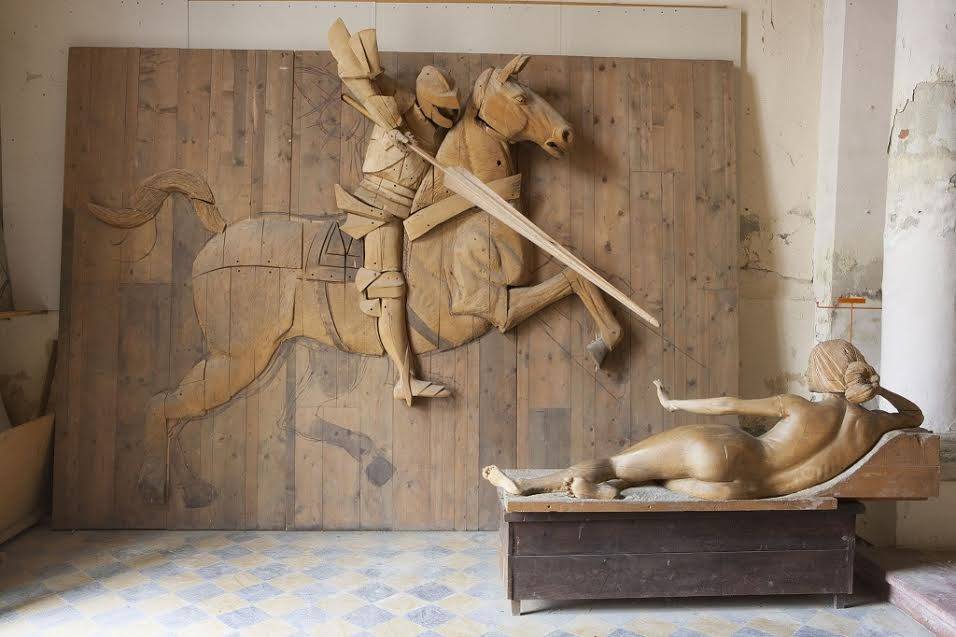 in rame, figure in terracotta, bronzi e infine opere in legno, come il monumentale San Giorgio.