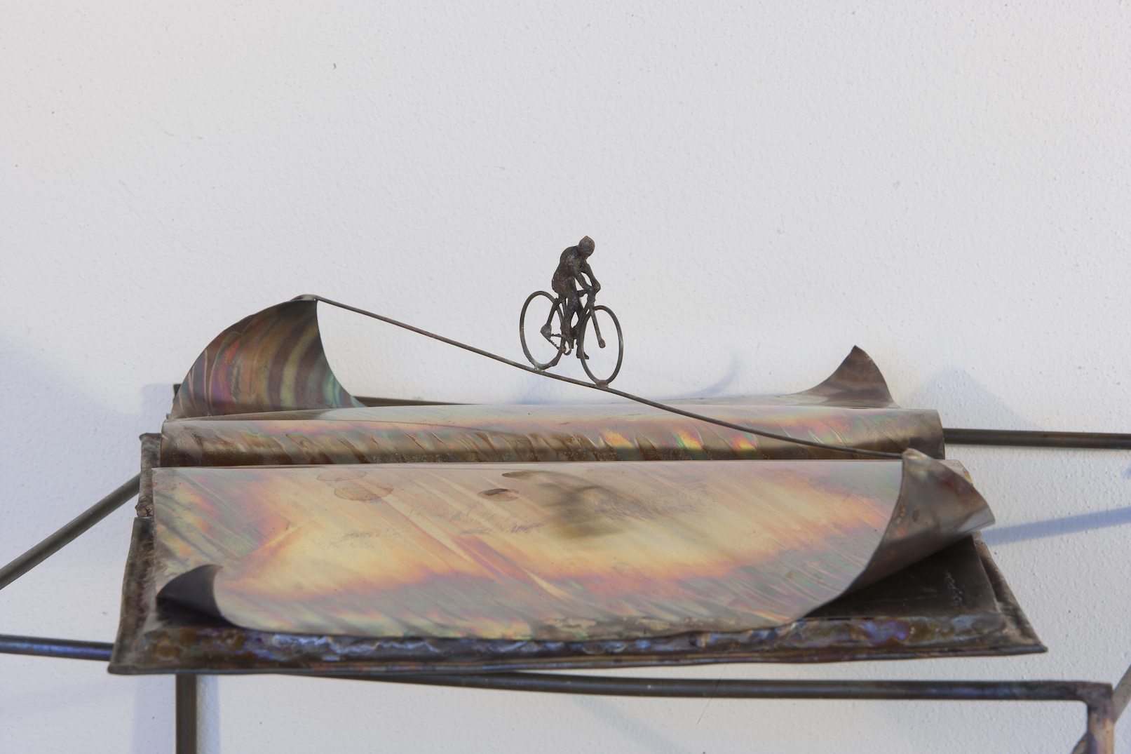 Foglie, e noi ‘come le foglie’, citando i versi del poeta greco Mimnermo. Appassionato come Ulisse Aldrovandi alla diversità del mondo vivente, Nicola Zamboni realizza da oltre quarant’anni foglie in rame, di forme e dimensioni differenti, nessuna uguale all’altra, nei margini, nelle nervature. La loro creazione evoca un rito antico, possibile o immaginario. Il fuoco della fiamma ossidrica, guidato in irripetibili arabeschi, buca la lamina metallica: il disfacimento della superficie rinvia, in un immediato processo di identificazione, alla caducità dell’esistenza umana. Sono sculture di vanitas, di raffinata esecuzione e commuovente bellezza, che resistono, nel tempo, perché non contaminate dal potere dell’ovvio e delle mode.