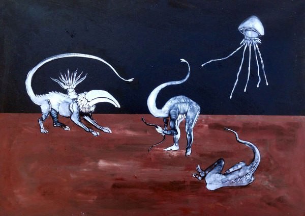 L’autore inizia la sua attività espositiva con opere grafiche nell’agosto del 1999 e nell’arco di una decina di anni intraprende un percorso caratterizzato da figure antropomorfe surreali ed enigmatiche che sono la chiave per aprire un mondo criptico e onirico. Il fine ultimo è sempre lo stesso: la ricerca dell’origine della vita, delle forme e dell’estetica della natura. Il titolo della mostra, “Chimera Estetica”, riassume efficacemente i riferimenti alla mitologia greca come mezzo d’espressione finalizzato a creare poesia e dialogo su cosa è e cosa non è il Bello. In parallelo si ritrovano le nature morte, dalle rivisitazioni di composizioni celebri a quelle più personali.