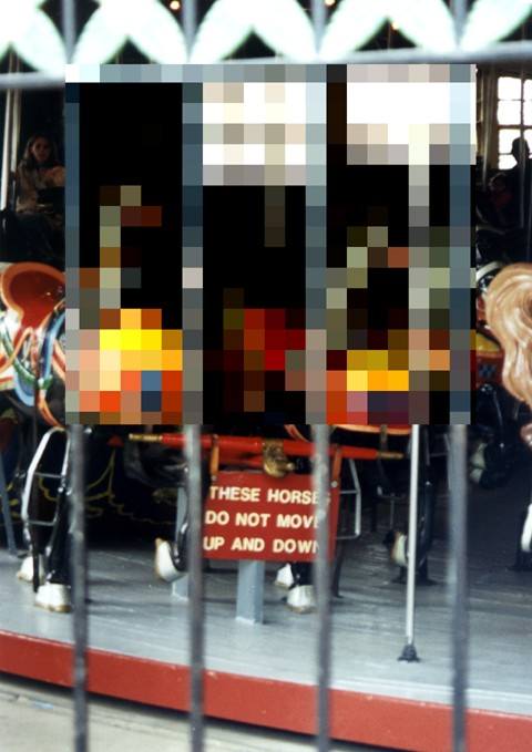 In pratica si tratta del dispositivo che viene correntemente usato nei telegiornali per celare l’identità di qualcuno durante un evento drammatico o, nelle vendite, per celare il film o il gioco da computer. In questo caso si ha la facoltà di vedere solo la parte dimostrativa prima di comprare il prodotto e, molto spesso, le immagini a disposizione risultano altamente poetiche e qualche volta propongono...un’altra realtà.