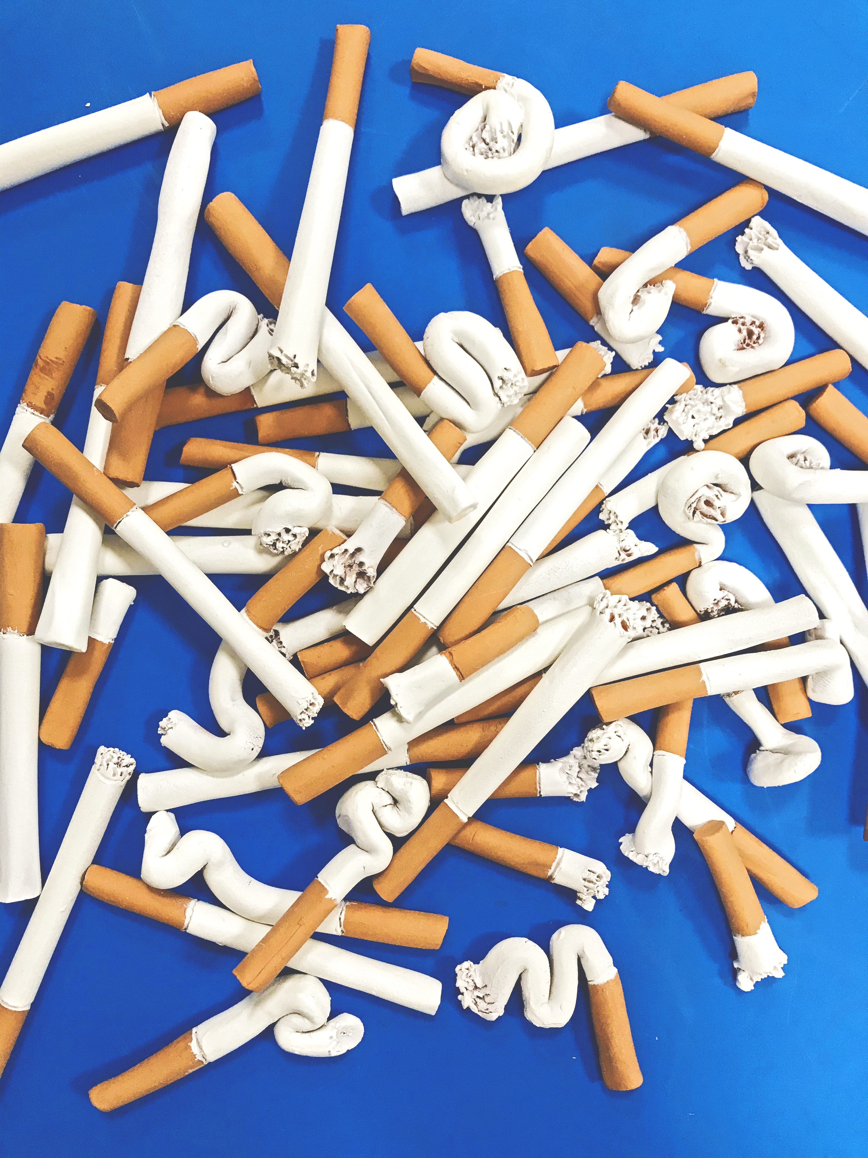 Le opere in mostra hanno un atteggiamento diretto, in qualche modo aggressivo e repellente. E’ la fase iniziale del rapporto che l’artista crea tra le sue opere e lo spettatore, mediato da una sottile violenza a cui la nostra società appartiene e a cui è completamente avvezza. I disegni, che aprono la mostra, introducono emotivamente lo spettatore ad uno stato di allerta. Sono porzioni, elementi o liquidi del corpo di SAM rappresentati dall’artista. Alcuni disegni sono celati dietro ad una superficie opacizzata, quasi a suggerire una perdita di lucidità del personaggio-SAM, come se la vista lo stesse momentaneamente abbandonando. Alcuni degli oggetti scultorei presenti in mostra, come le sigarette e il posacenere, introducono un ritmo e un rituale di azioni che sono state compiute da SAM prima del suo collasso e conducono idealmente alle opere principali, le sculture Agitating chunks of matter in uncertain space e A friend of mine once told me something about a phantom limb. Qui è subito visibile l’approccio di Nicole Colombo alla scultura, che parte da un’indagine spaziale, dalla struttura costitutiva dell’oggetto, dalla bellezza funzionale dei dettagli, prestando particolare attenzione al trattamento - sempre molto sensuale - dei materiali.