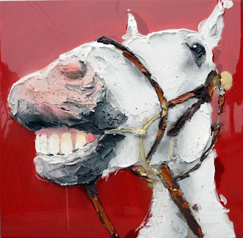 L’esposizione prende le mosse da ‘Animali da cortile’, personale realizzata nel 2008. Fin da piccola ha osservato gli animali e li ha visti ‘selvaggiamente’ belli. Solo recentemente ha trovato il taglio pittorico che voleva dargli ed ha cominciato a dipingerli. Lavora su tavola con colori acrilici. Parte dal disegno per poi ridiscutere tutto il lavoro con una pasta a grande spessore, stesa con la spatola. .