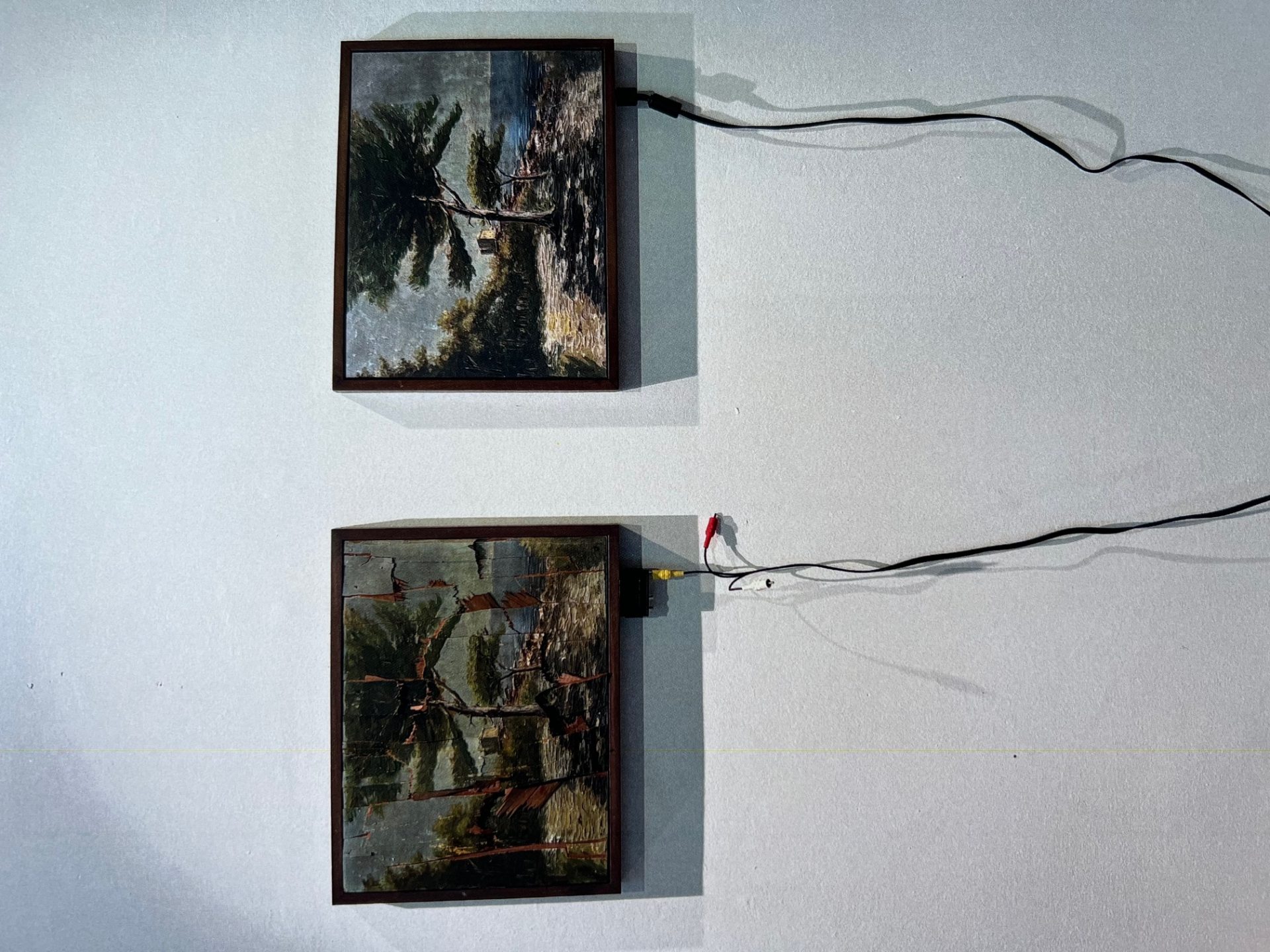 Tra le serie esposte, spiccano i "caricamenti" e i "silicio", opere che combinano vecchi quadri e codici informatici, “Le 120 giornate di Sodoma” (pacchi Amazon parzialmente strappati dai quali affiorano particolari della tela in essi contenuta) e “Luci senza paesaggio”: un percorso che offrirà al visitatore spunti per una riflessione critica sull’illusione, su ciò che è reale e ciò che è virtuale, e sull’alienazione derivante dal questo processo (irreversibile?) di tecnologizzazione.