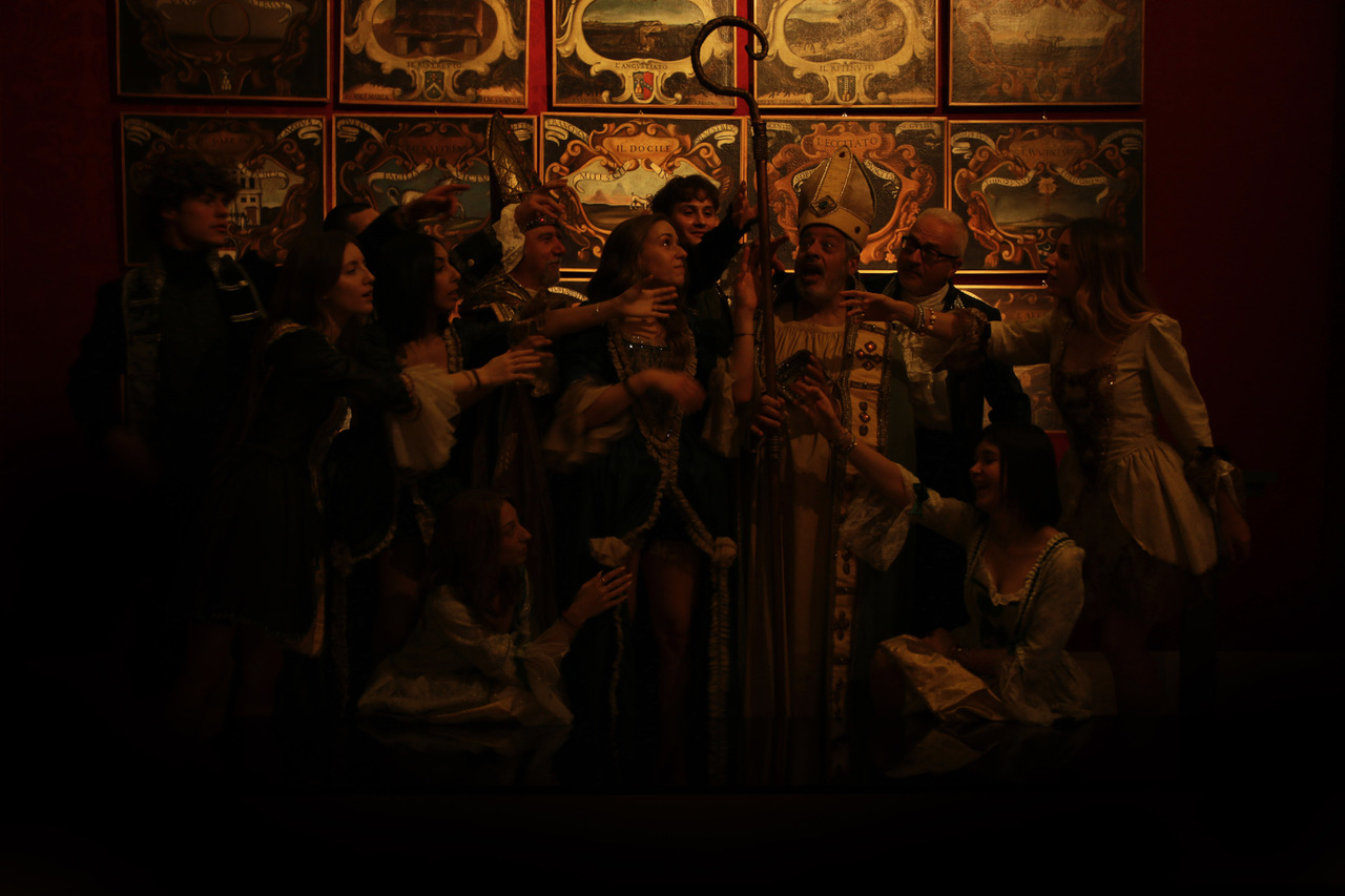 Nelle sale del Palazzo si susseguono immagini che fanno rivivere i fasti dei tempi che furono e dei racconti qui conservati, i ricordi degli spazi e dell’umanità che ci ha vissuto emergono come scintille di luce che si fanno largo nel fondo oscuro, in un perfetto equilibrio tra memoria e modernità.