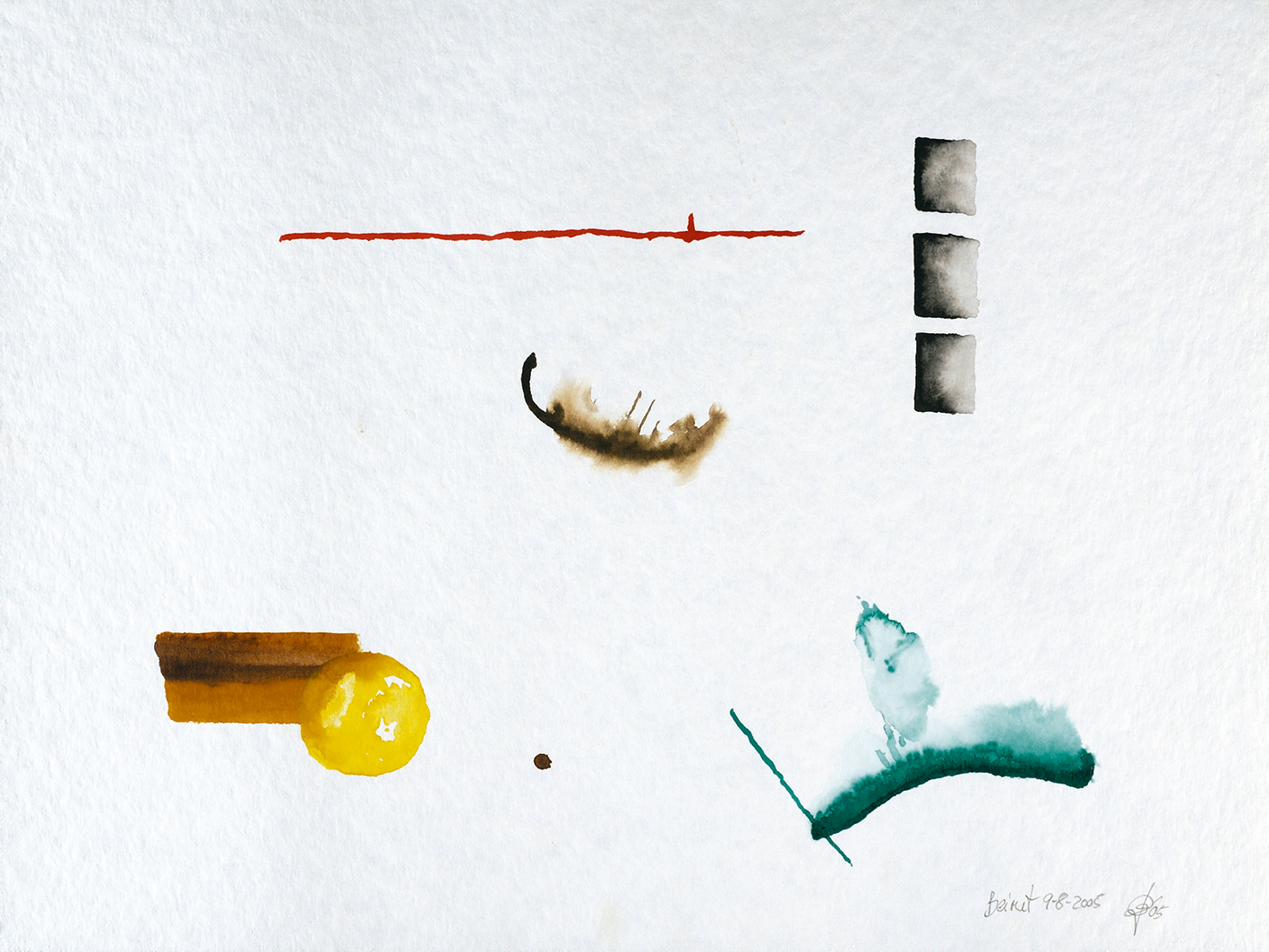 Forme, colori, spazio, tempo abitano la pagina bianca come un nuovo linguaggio significante (Gestalt) che cattura risonanze e trasalimenti percettivi di racconti vissuti, di incontri e paesaggi. Acquerelli come grammatica intrisa del vissuto del giorno appena trascorso. Più che una pittura interiore, una meditazione: segni che attraversano mani, occhi, pennello e colori.