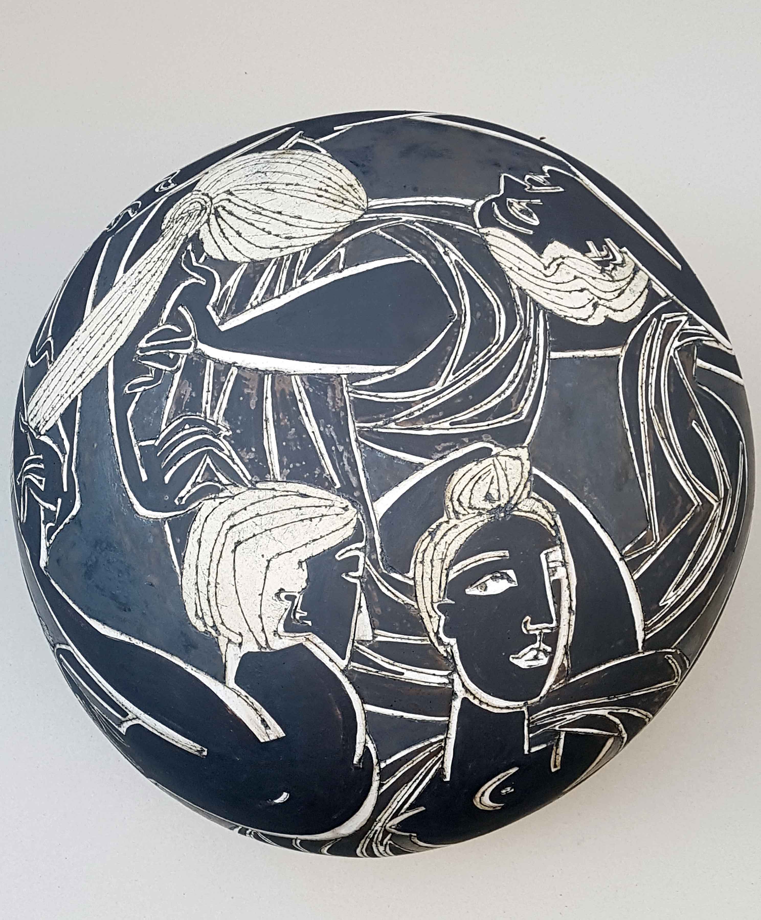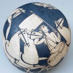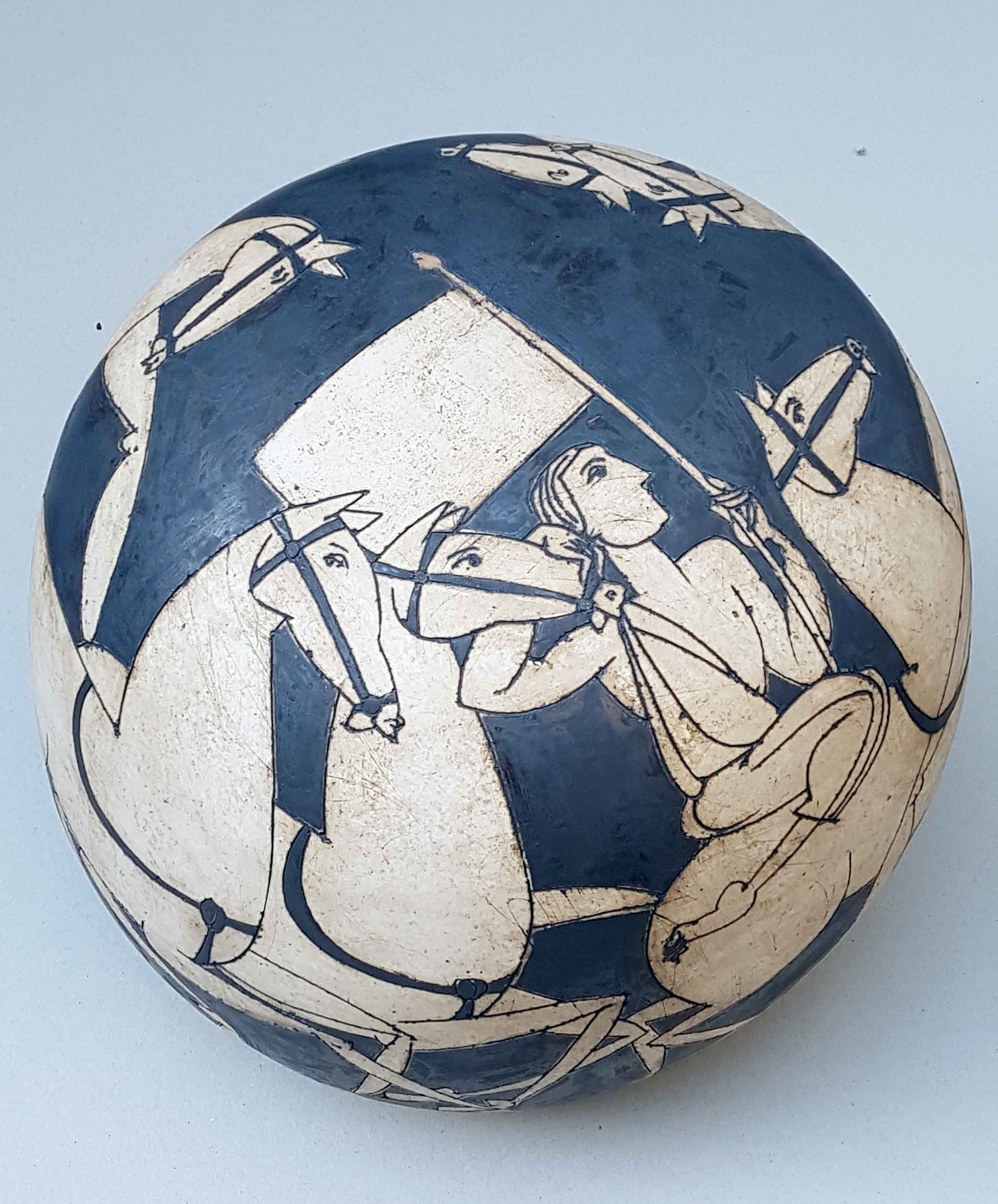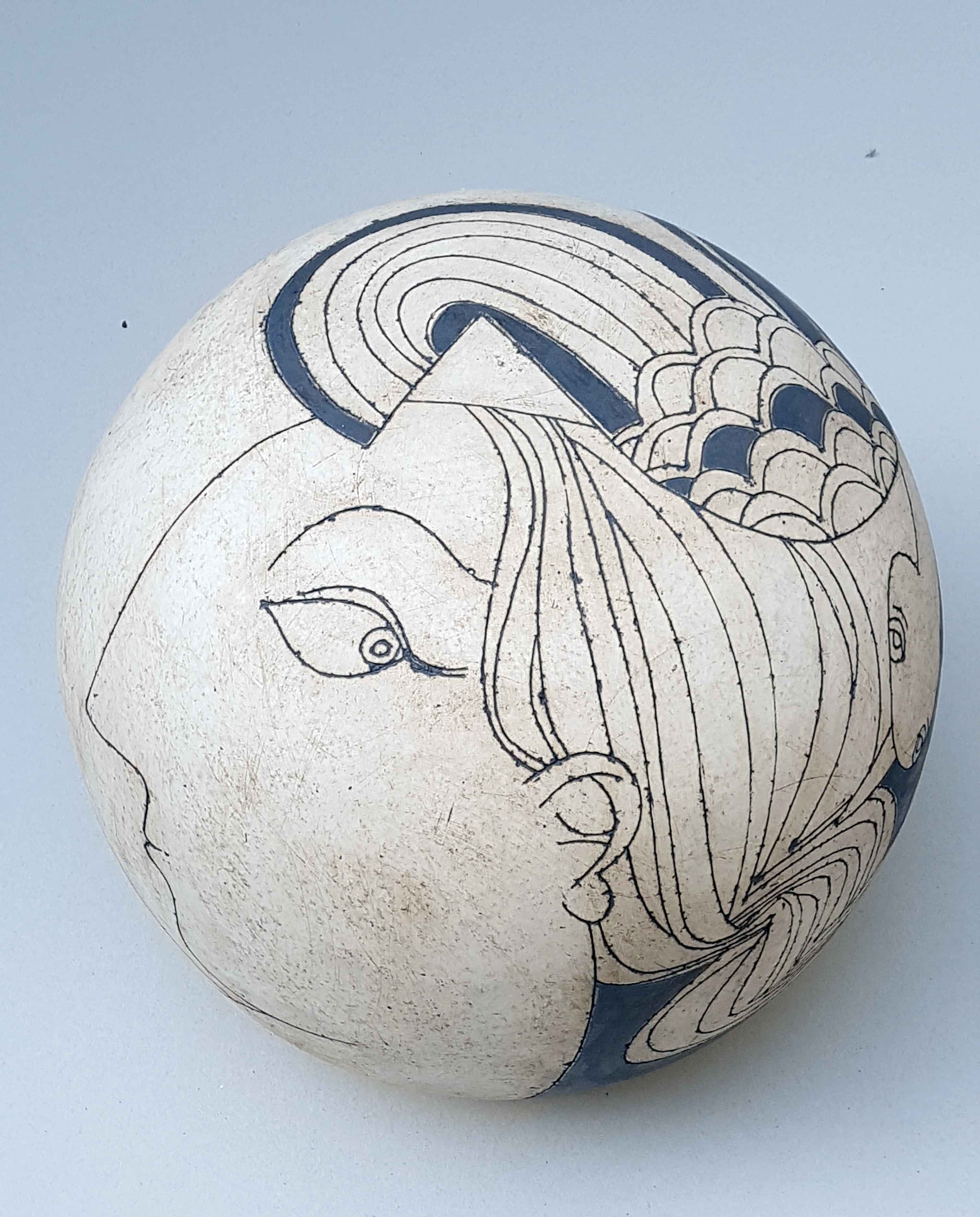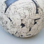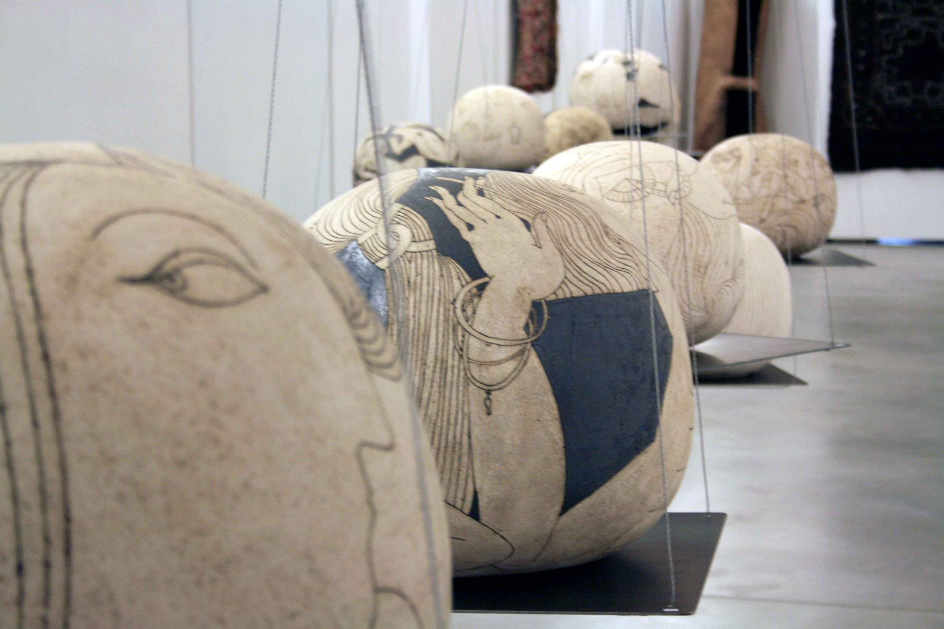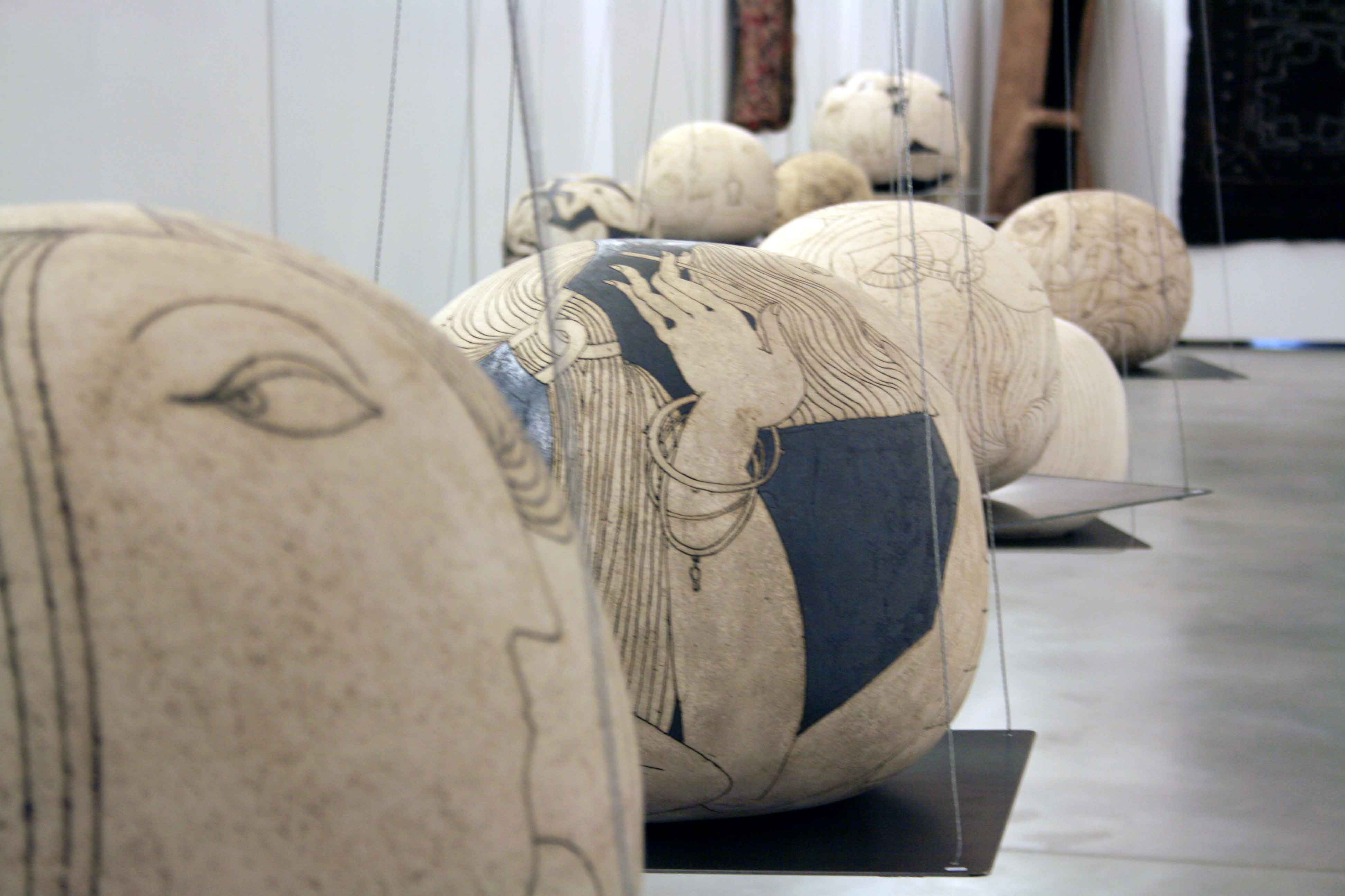 In mostra le grandi sfere in ceramica dell’artista armena, sulle quali si avvicendano da ogni lato i dipinti dei flessuosi corpi umani, per la maggior parte femminili, che caratterizzano l’elemento fondante delle sue sculture.