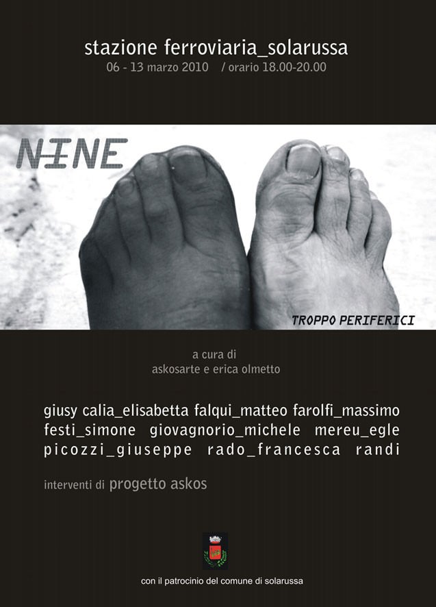 Nella cornice di un affascinante scenario di archeologia industriale immerso nel verde delle campagne di Solarussa, in una delle cosiddette “zone di confine”, la vecchia stazione ferroviaria apre ancora una volta le porte all’arte contemporanea con l’happening NINE, evento della rassegna “Troppo periferici” ideata dal gruppo artistico Askosarte (Chiara Schirru e Michele Mereu) che ha già ospitato al suo interno diverse manifestazioni artistiche.