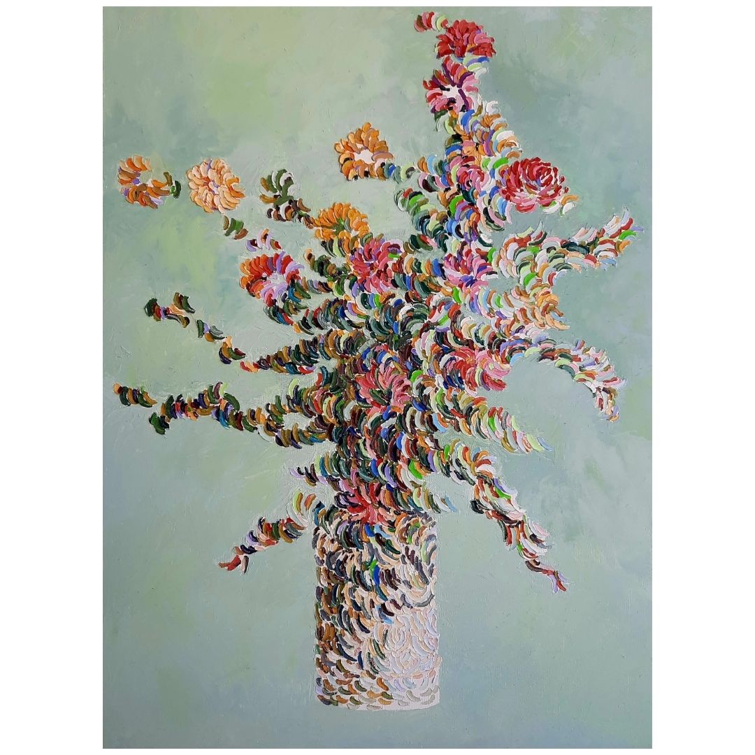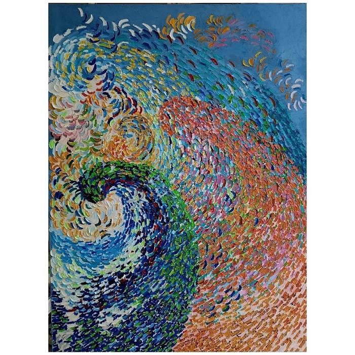 Così, ad esempio, mentre le opere del 2019 erano ancora fondate su una più serena e ordinata compostezza strutturale, un’opera del 2020 come Maroso 2 fa intuire una nuova percezione di turbamento, una drammatica rivelazione di energie nascoste nei vortici tracciati dalle linee forza in cui le pennellate divengono quasi campi magnetici, pulsazioni di materia che agitano il dipinto come le ondate di un misterioso pulviscolo cromatico.
