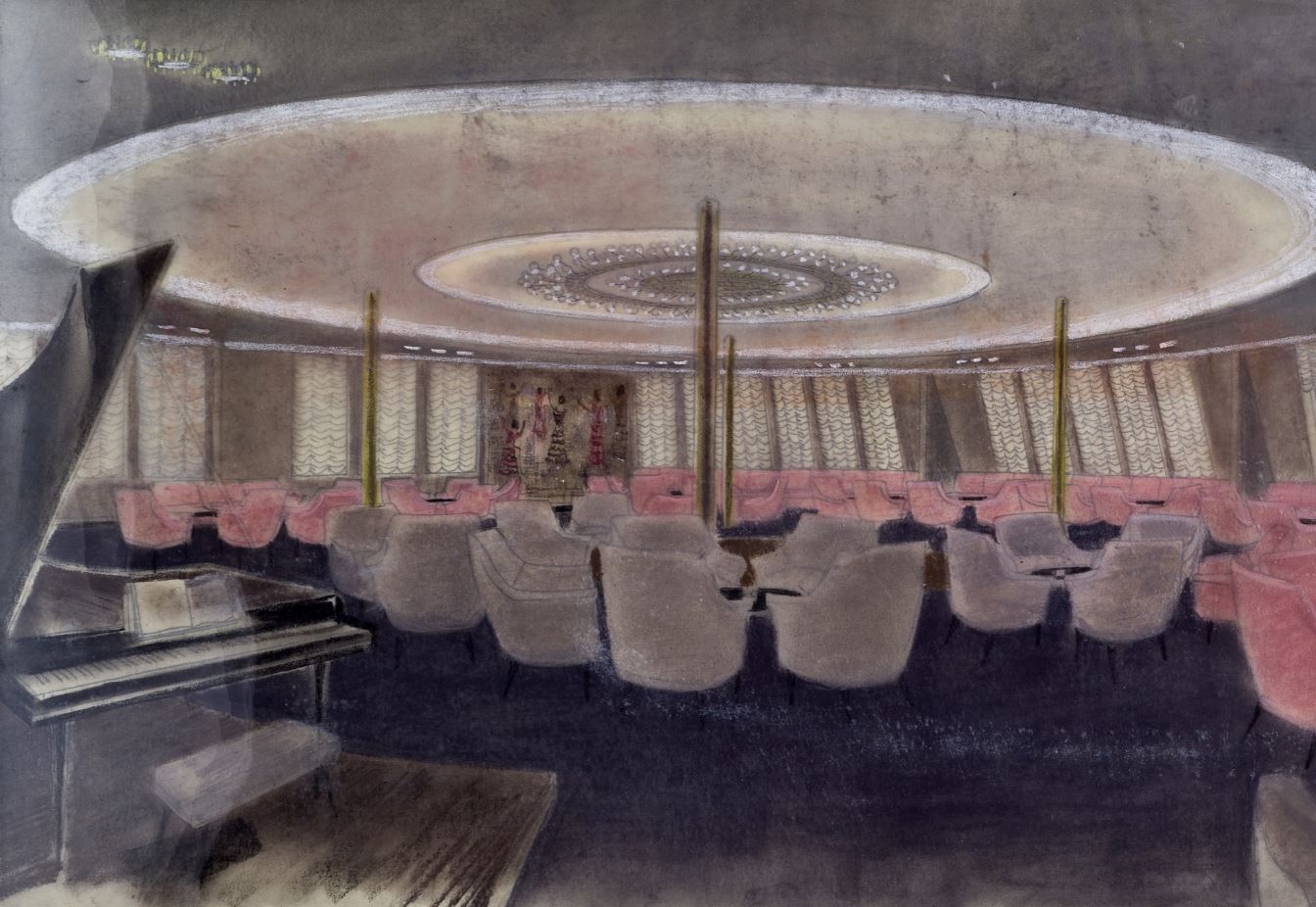 Lungo la sala principale si sviluppa la tematica storico artistica con l’esposizione di copie autografe, progetti, schizzi e foto d’epoca; sono inoltre presenti pezzi originali di arredamento dalle navi e opere d’arte di pregio, come i cinque arazzi provenienti dalla TN Michelangelo, per ricreare, o almeno evocare, gli interni delle grandi navi. In tutta la sala sono installati pannelli a parete e teche d’esposizione, oltre alla presenza di video proiezioni con immagini di repertorio e interviste.