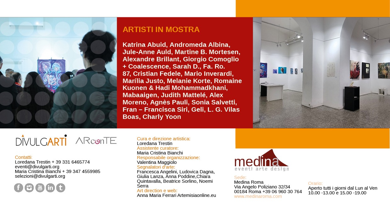 La galleria è aperta dalle ore 10:00 alle 13:00 e dalle ore 15:00 alle 19:00